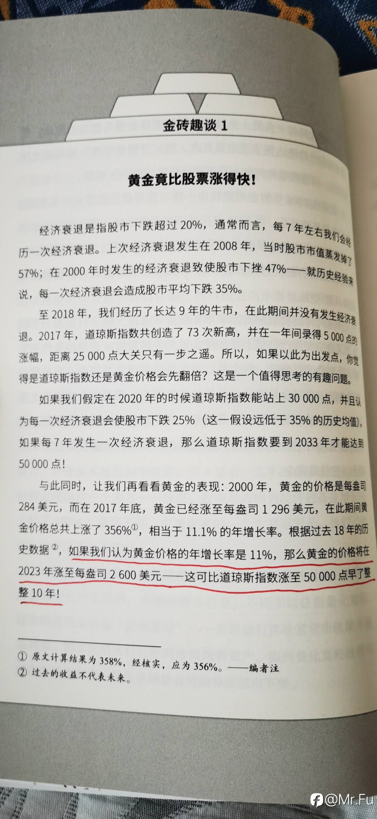 给大家推荐一本书 《黄金是更好的选择》 华尔街不想让你知道的秘密 !书中写到黄金2023年涨至每盎司2600美金!更清楚的阐释了经济周期和黄金的内在关系! 风险提示:本文所述仅代表作者个人观点,不代表 Followme 的官方立场。Followme 不对内容的准确性、完整性或可靠性作出任何保证,对于基于该内容所采取的任何行为,不承担任何责任,除非另有书面明确说明。