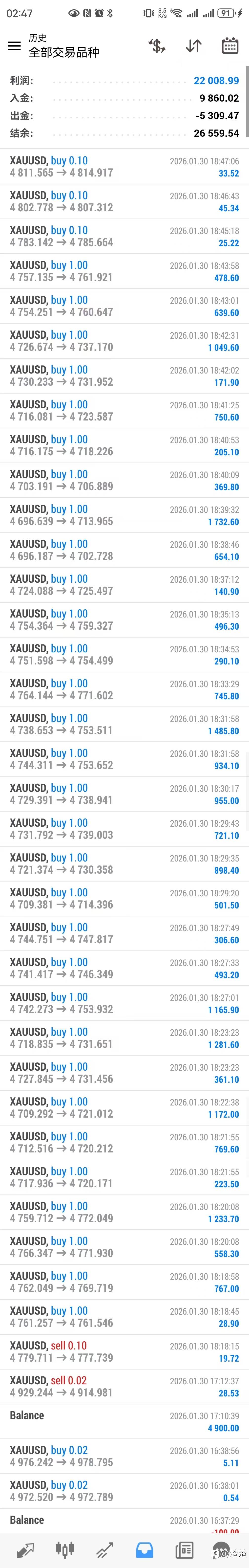 今天多黄金,从1874一路多到1856,幸好还是盈利。看来刷单系统还是比较抗风险的。🤔 风险提示:本文所述仅代表作者个人观点,不代表 Followme 的官方立场。Followme 不对内容的准确性、完整性或可靠性作出任何保证,对于基于该内容所采取的任何行为,不承担任何责任,除非另有书面明确说明。