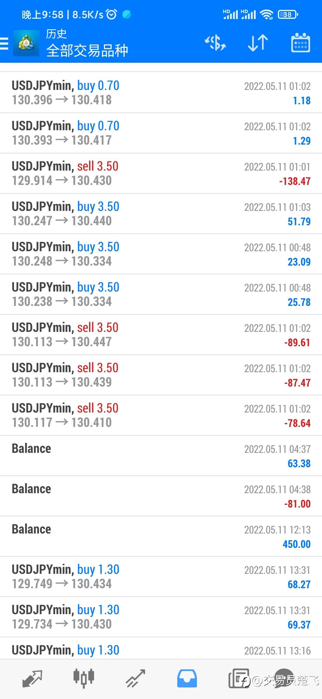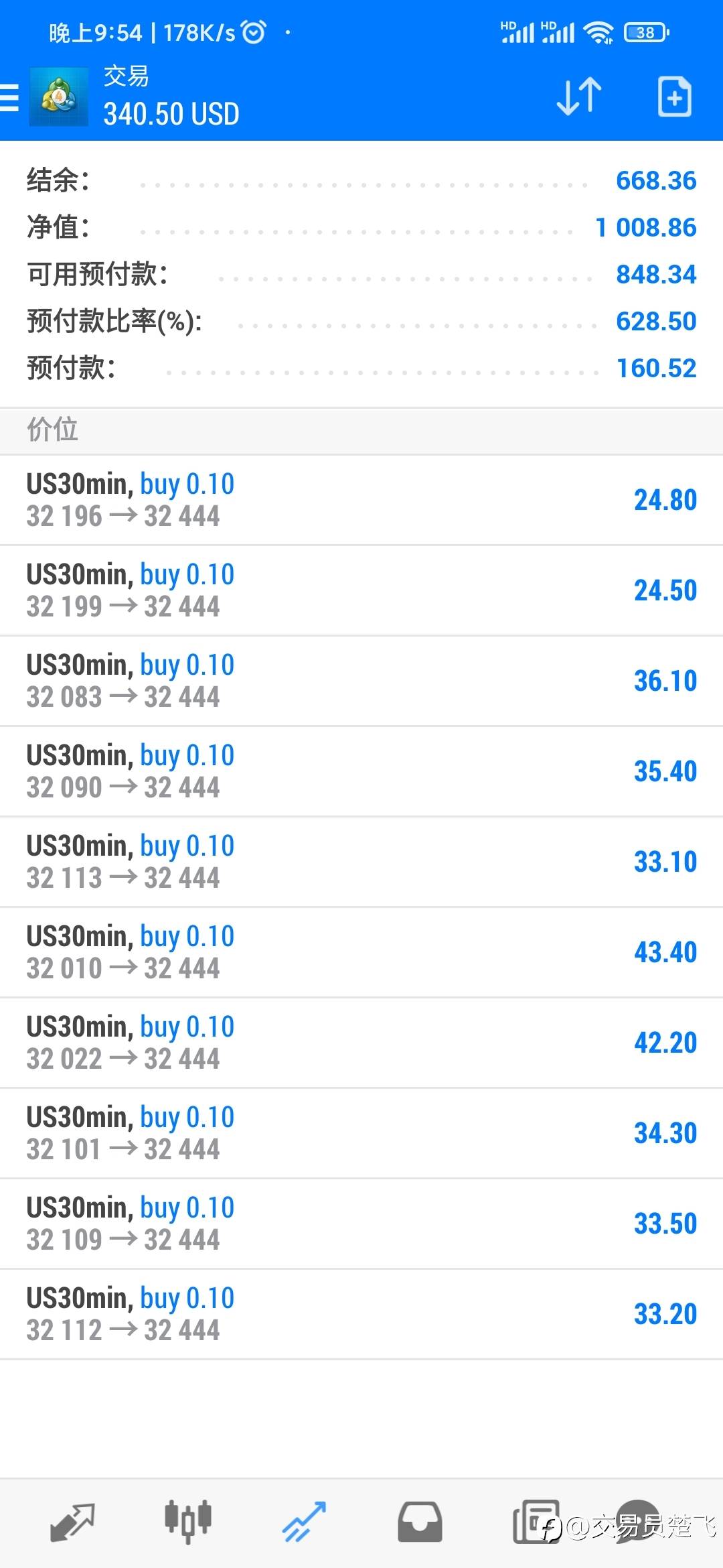 一大早美日爆仓了,昨晚手贱,手动开单对冲了,没能坚决止损,今天下午找朋友借了三千,入金450刀,晚上空原油,多美日,多道指,基本行情都把握住了,最重要的是风控始终保持在一个最低空间里,接下来只要做好严格止损,我相信赚钱是必然的!!!一起加油吧!#晒单专区##交易故事# 风险提示:本文所述仅代表作者个人观点,不代表 Followme 的官方立场。Followme 不对内容的准确性、完整性或可靠性作出任何保证,对于基于该内容所采取的任何行为,不承担任何责任,除非另有书面明确说明。