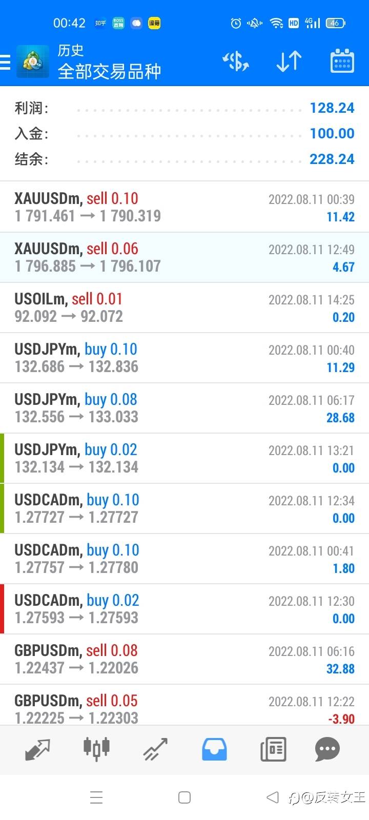 今天止盈240美金,今日收工 风险提示:本文所述仅代表作者个人观点,不代表 Followme 的官方立场。Followme 不对内容的准确性、完整性或可靠性作出任何保证,对于基于该内容所采取的任何行为,不承担任何责任,除非另有书面明确说明。