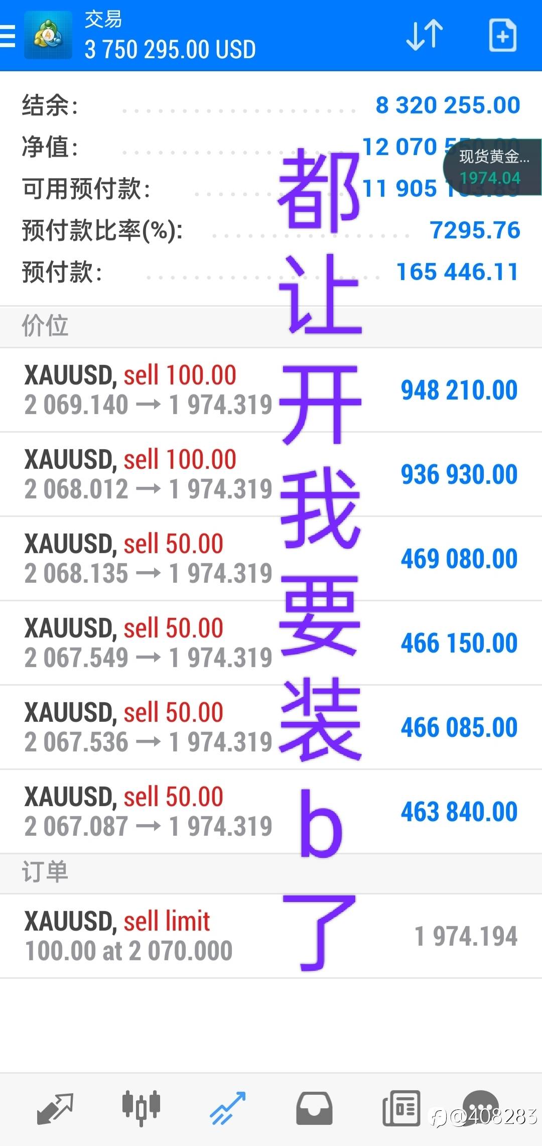 兄弟们 xau先看1833😍😜😝😘😜😜😜 风险提示:本文所述仅代表作者个人观点,不代表 Followme 的官方立场。Followme 不对内容的准确性、完整性或可靠性作出任何保证,对于基于该内容所采取的任何行为,不承担任何责任,除非另有书面明确说明。
