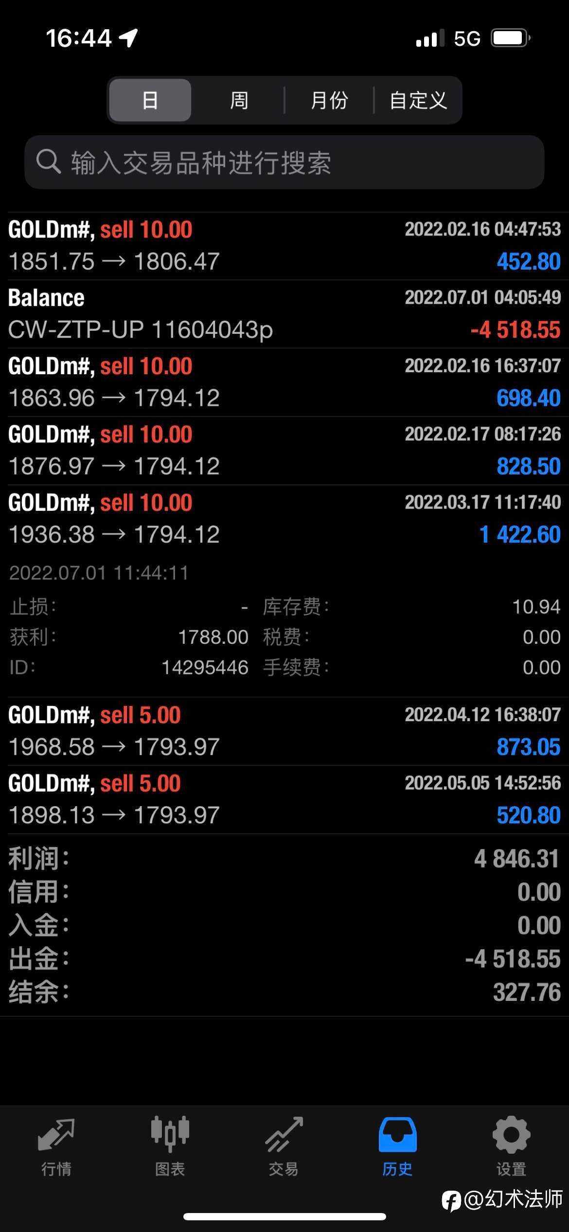 #XAU/USD# 这几天美指大幅上涨,导致非美货币巨大单边行情,黄金也是上跳下窜,照出了很多妖魔鬼怪。看到社区很多“大神”大幅回测,导致很多小白跟单纷纷叫苦连天,庆幸自己风险控制到位,虽然自己也是EA交易,但是风控还行,两个账户浮亏不过10%,目前黄金的账户已经止盈出来。