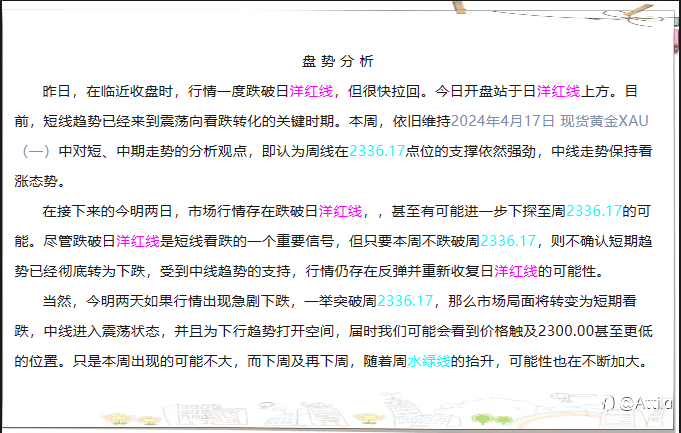 昨天尾盘2柱4h未能向下形成突破,值得注意,短线有横盘或逆转的迹象。10点4h收盘如收在 1766.18之上,则空单不妙,应择机主动离场,并且不排出反手做多的可能。如收在 1765.84之下,则空单继续持有,且如再次下探昨低,应适当下调止损位。 风险提示:本文所述仅代表作者个人观点,不代表 Followme 的官方立场。Followme 不对内容的准确性、完整性或可靠性作出任何保证,对于基于该内容所采取的任何行为,不承担任何责任,除非另有书面明确说明。