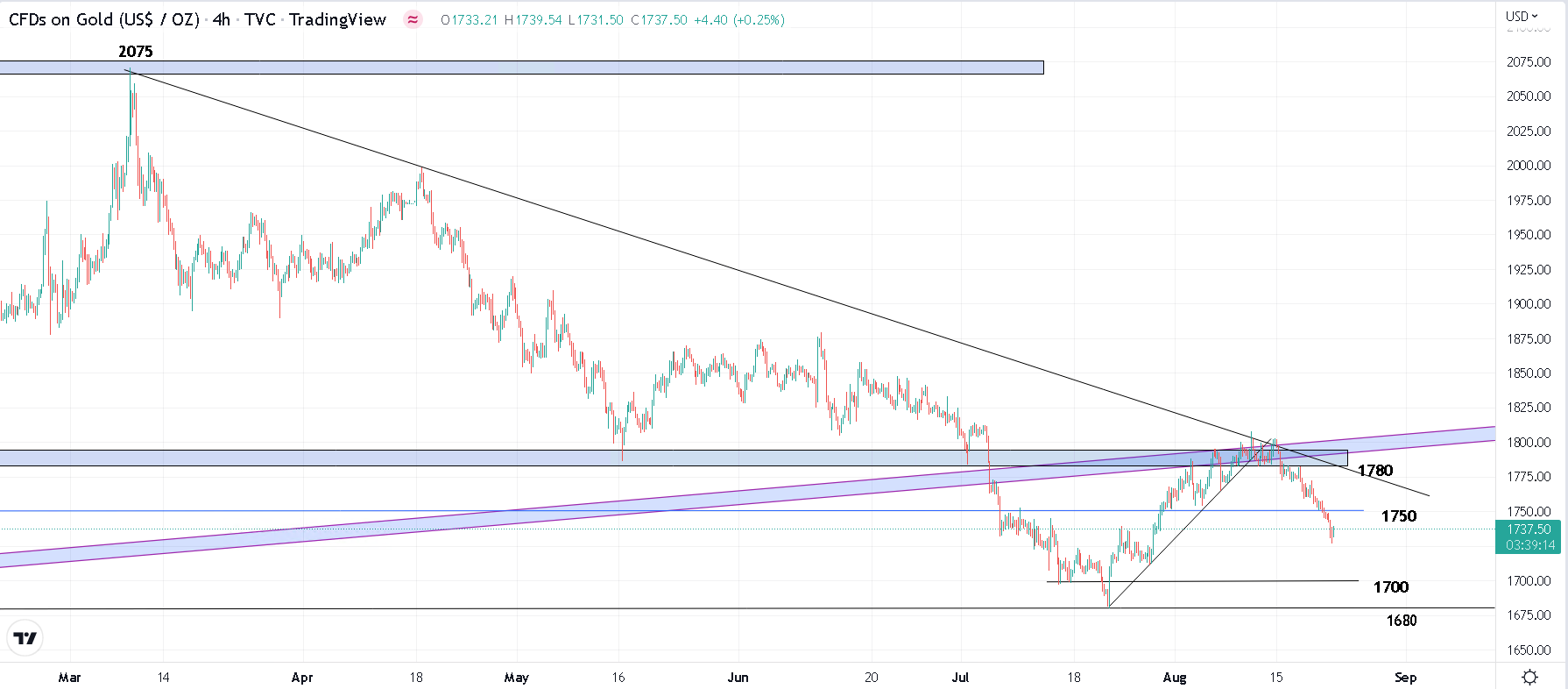 黄金昨日晚间小幅回落 目前报价1756附近 小周期来看黄金亚欧盘走震荡的可能性较高 积极投资者可以等待调整到1749~1747区域轻仓做多 上方1762压力突破后存在一次激进的短线追多机会 重点关注1742支撑跌破1742后黄金可能继续向下调整