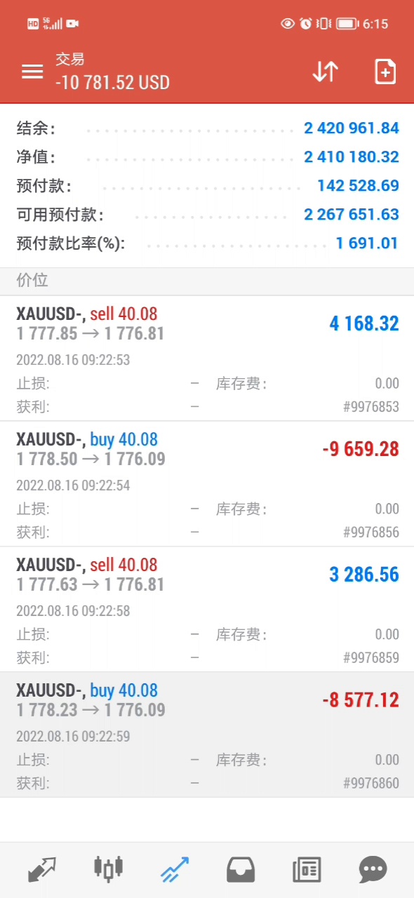 2022年9月1日 星期四 每天12组24对(黄金对冲策略) 稳稳的手续费 风险提示:本文所述仅代表作者个人观点,不代表 Followme 的官方立场。Followme 不对内容的准确性、完整性或可靠性作出任何保证,对于基于该内容所采取的任何行为,不承担任何责任,除非另有书面明确说明。