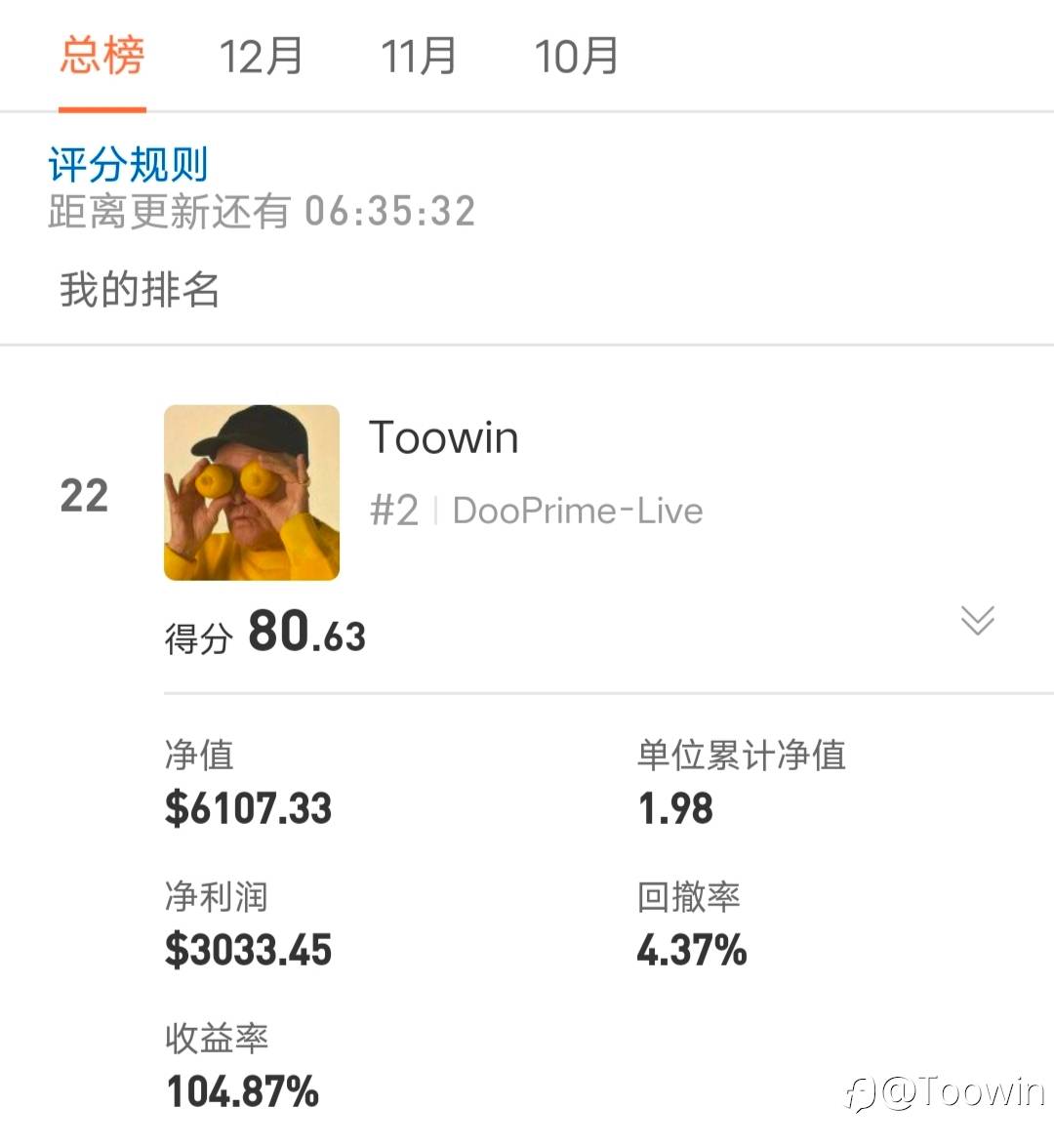 3号趋势跟踪暴利策略已上线,固定2000美金左右做,月化100%左右,翻倍之前免费,建议采用场外资金管理方式,定期出金,标准账户2000美金一倍跟随。早上车早赚钱! 已编辑 26 Sep 2022, 10:51 风险提示:本文所述仅代表作者个人观点,不代表 Followme 的官方立场。Followme 不对内容的准确性、完整性或可靠性作出任何保证,对于基于该内容所采取的任何行为,不承担任何责任,除非另有书面明确说明。