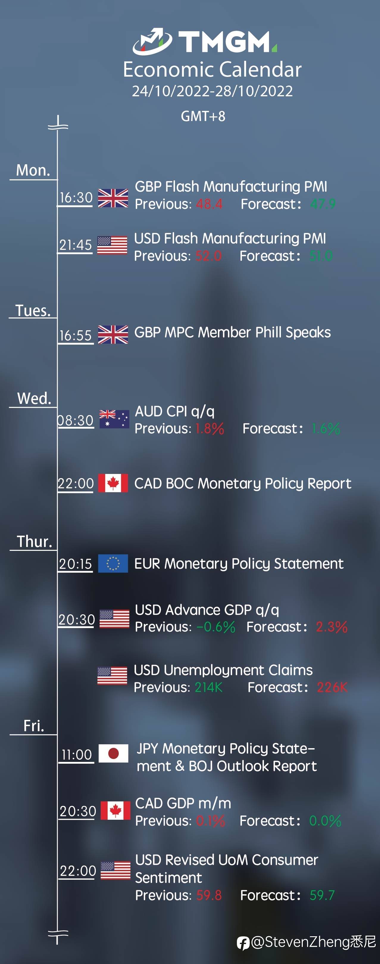 Economic Calendar 24.10.2022 - 28.10.2022 风险提示:本文所述仅代表作者个人观点,不代表 Followme 的官方立场。Followme 不对内容的准确性、完整性或可靠性作出任何保证,对于基于该内容所采取的任何行为,不承担任何责任,除非另有书面明确说明。