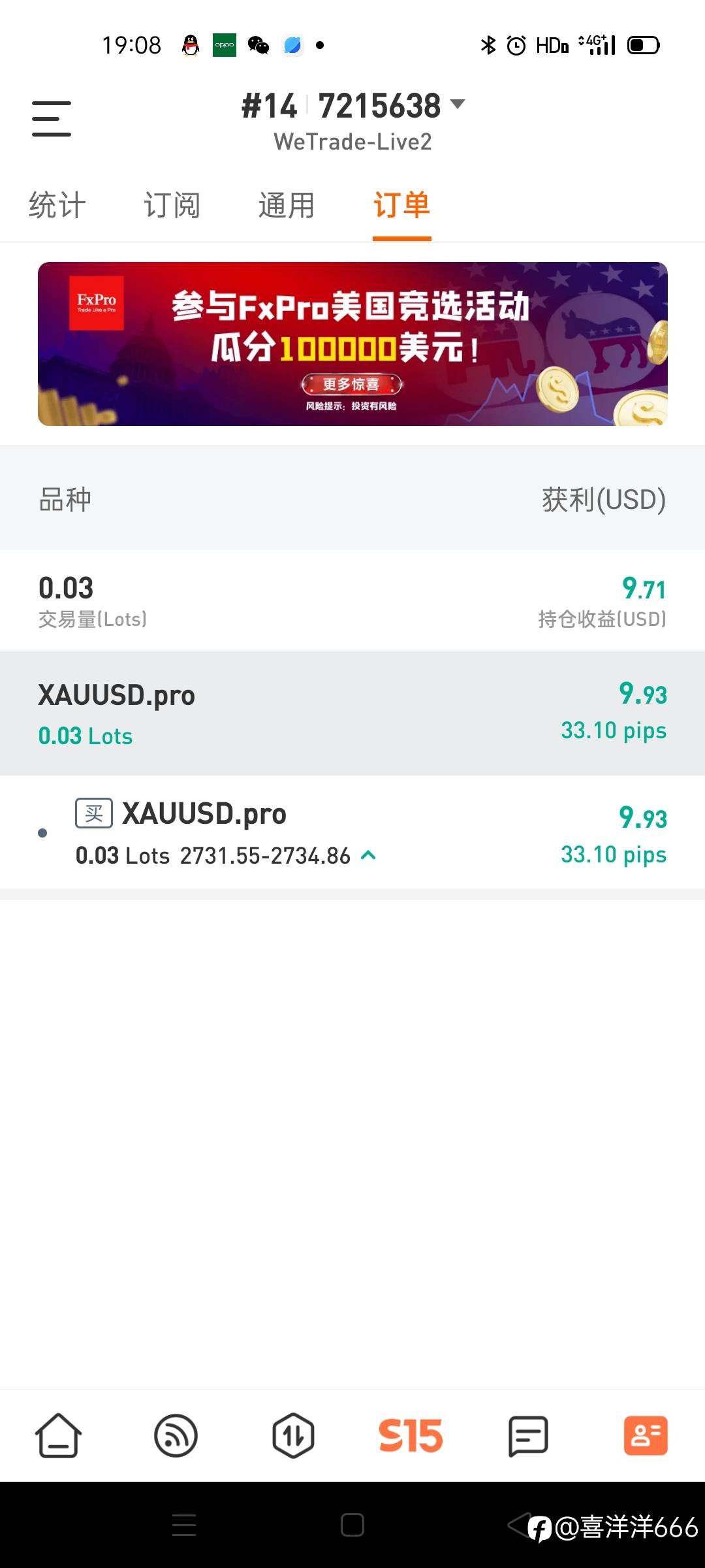 不到一个月翻倍啦!10月24日入金500美金,11月16日出金500!目前余额500多美金,归功于采取最牛叉的交易策略,一单一单来,严格风控,绝不重仓,复利策略,一句话,只要心态摆好,不要太贪,慢就是快,希望老铁们一起共勉,一起成长,一起慢慢实现财务自由! 风险提示:本文所述仅代表作者个人观点,不代表 Followme 的官方立场。Followme 不对内容的准确性、完整性或可靠性作出任何保证,对于基于该内容所采取的任何行为,不承担任何责任,除非另有书面明确说明。