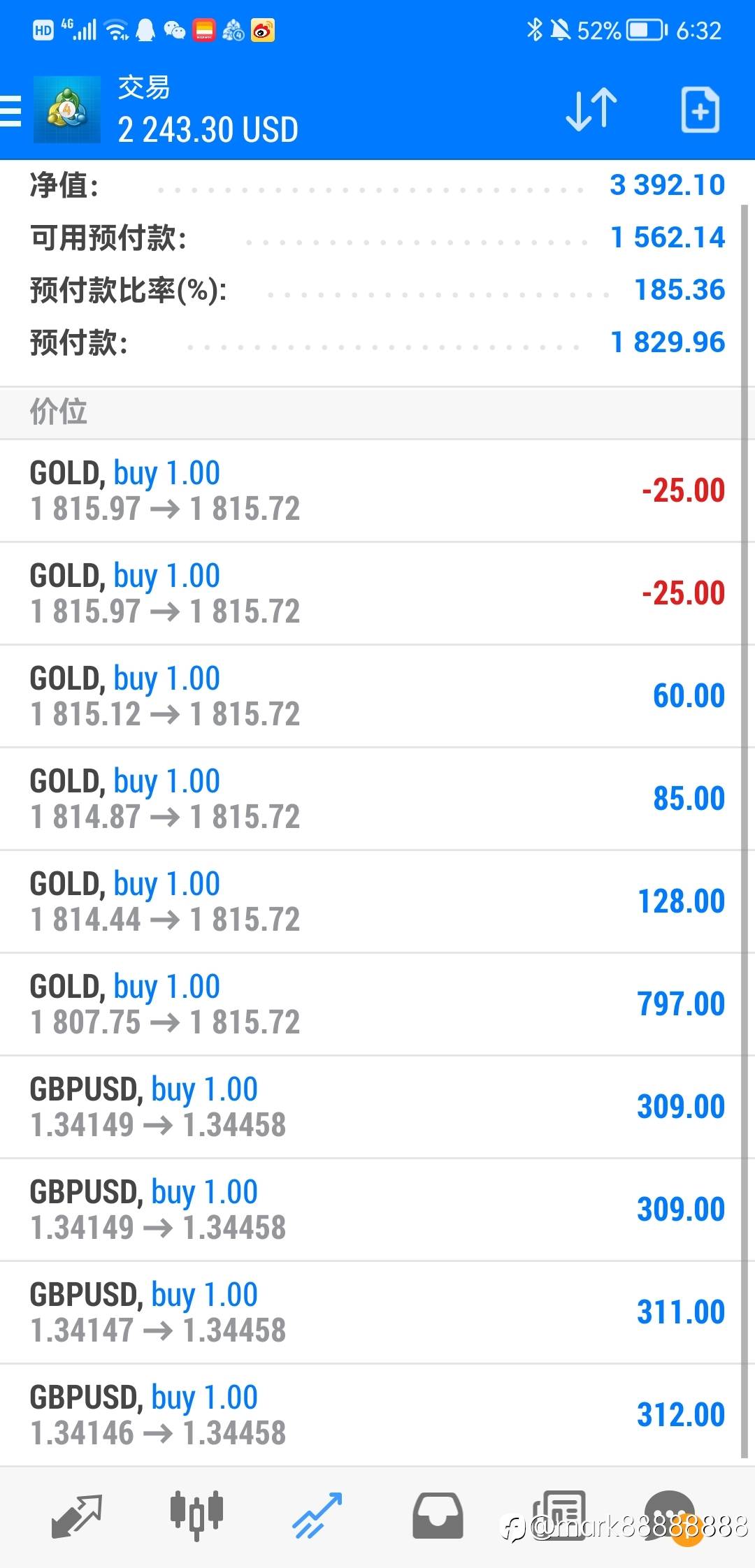 XM平台入金100,只为参加比赛!一个字!干 风险提示:本文所述仅代表作者个人观点,不代表 Followme 的官方立场。Followme 不对内容的准确性、完整性或可靠性作出任何保证,对于基于该内容所采取的任何行为,不承担任何责任,除非另有书面明确说明。