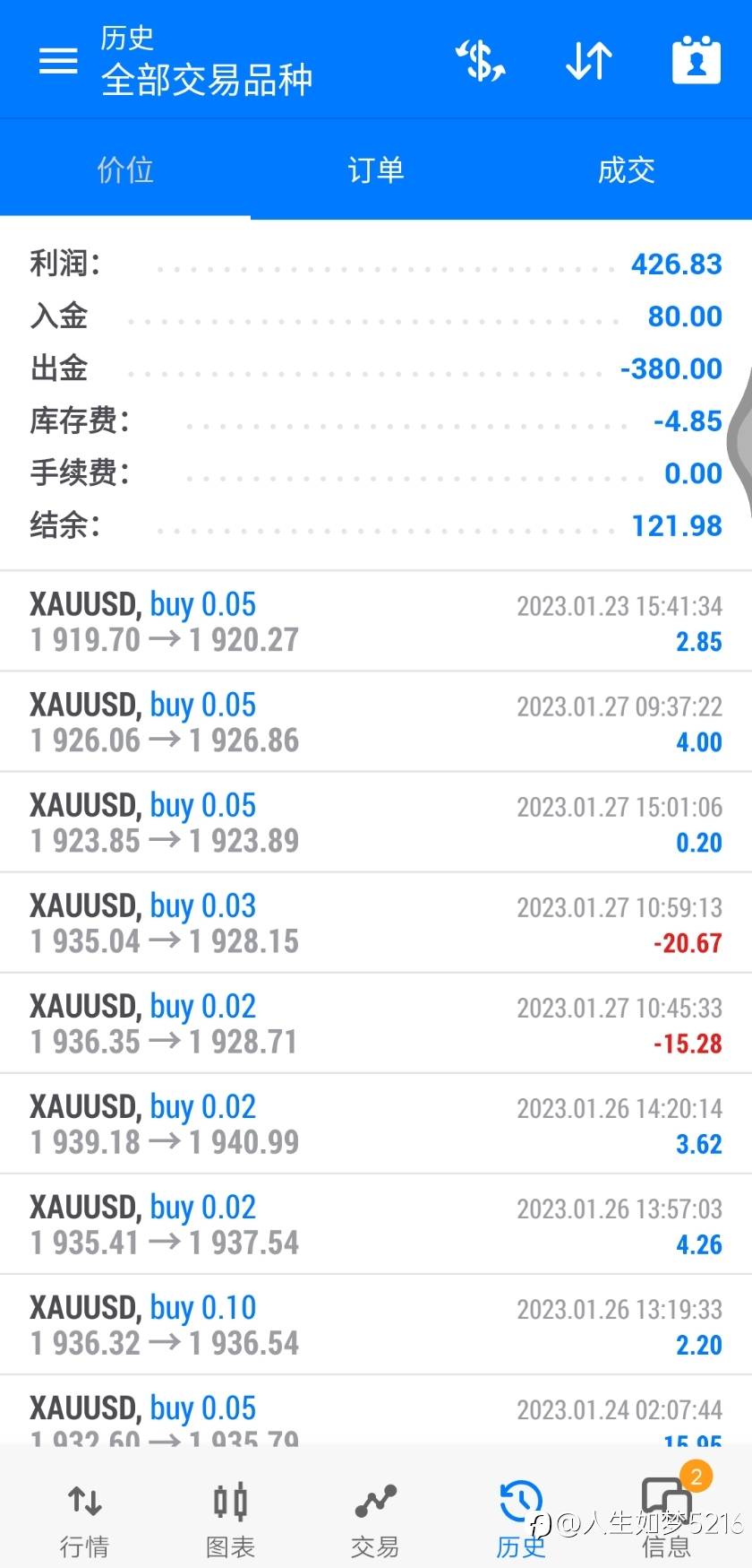 年前最后一个交易日入金80,经历6个交易日做到这些。 风险提示:本文所述仅代表作者个人观点,不代表 Followme 的官方立场。Followme 不对内容的准确性、完整性或可靠性作出任何保证,对于基于该内容所采取的任何行为,不承担任何责任,除非另有书面明确说明。