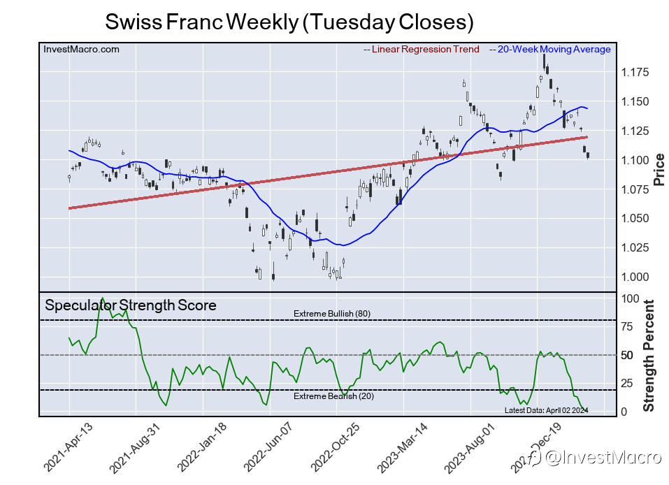 Swiss Franc (0.0 percent) vs Swiss Franc previous week (1.1 percent)