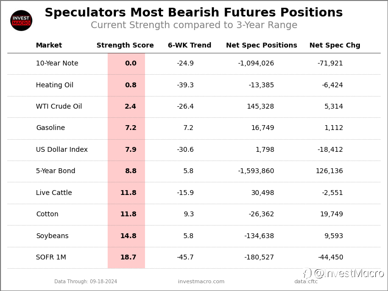On the downside, the Swiss Franc (0 percent), the Japanese Yen (0 percent), the US Dollar Index (1 percent), the Australian Dollar (4 percent) and the Canadian Dollar (16 percent) come in at the lowest strength levels currently and are all in Extreme-Bearish territory (below 20 percent).