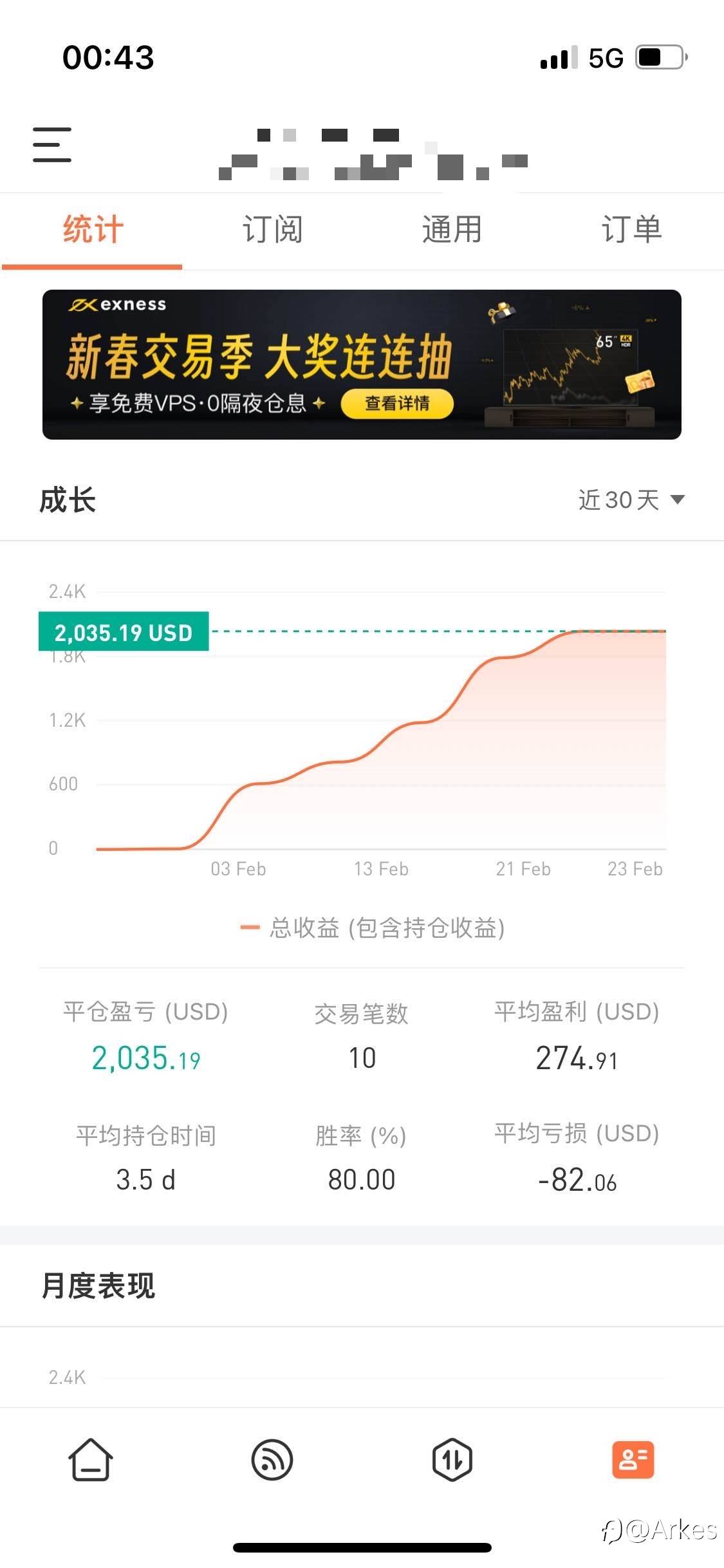 时隔一年重回外汇,23天实现翻仓,一共10笔交易胜率80%,没怎么回撤,所以曲线很漂亮。 这次没做黄金,主做的磅日和澳美这些,其中磅日完美跟踪区间震荡并成功预测向上突破,估计是运气好,也可能是找到感觉了,看来以前的学费没白交😂 →保持谦卑,保持敬畏,继续前行🙂 风险提示:本文所述仅代表作者个人观点,不代表 Followme 的官方立场。Followme 不对内容的准确性、完整性或可靠性作出任何保证,对于基于该内容所采取的任何行为,不承担任何责任,除非另有书面明确说明。
