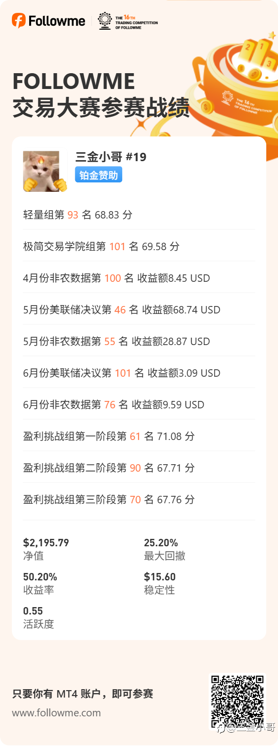 距离上次又进步了一点,目前用10万美分跑着,有合作的大佬吗 风险提示:本文所述仅代表作者个人观点,不代表 Followme 的官方立场。Followme 不对内容的准确性、完整性或可靠性作出任何保证,对于基于该内容所采取的任何行为,不承担任何责任,除非另有书面明确说明。