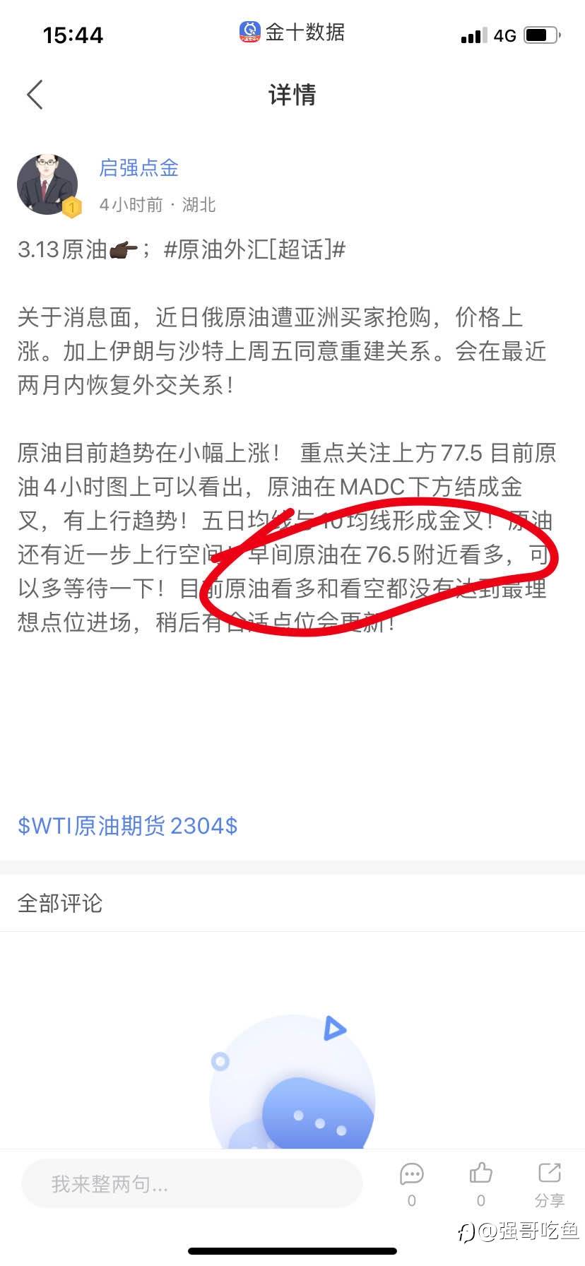 #XAU/USD# 这些天一直都有朋友粉丝都问我,我的资金小能不能小投资。启强这里无论资金大小,在我这都是一视同仁!能带你们赚钱就一定会做到。投资之路急不得,有不懂得地方可以咨询我,只要你相信启强,我们一起实现长久盈利也是有很大机会!#WTI.F# #GBP/USD# 风险提示:本文所述仅代表作者个人观点,不代表 Followme 的官方立场。Followme 不对内容的准确性、完整性或可靠性作出任何保证,对于基于该内容所采取的任何行为,不承担任何责任,除非另有书面明确说明。