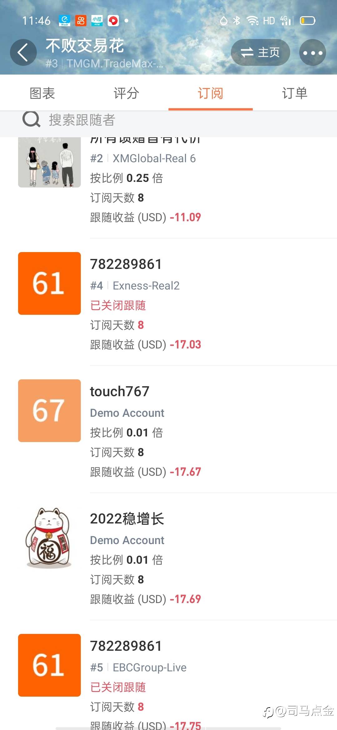 盈利才一千多美金,浮亏最多达到了800多美金,说自己的手法能让人安心睡觉,为了骗订阅费,良心都不要了?关键是下面还有好几个拖,都是捧哏,亏损大于盈利(盈亏比),胜率都只有64%,比毛毛的马丁还差几个档次,毛毛巅峰的时候,连续几个月,盈利大于亏损,并且胜率高达85%以上,就这样,虽然自己赚了钱,跟单者还是改不了大亏的结局。你比毛毛差七八个档次,凭什么带跟单者赚钱?