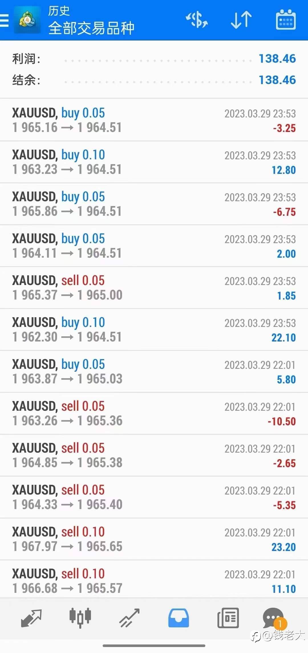 【3.27黄金走势分析】小时图上,上周五黄金同样也在局部形成小双顶,且目前已跌破颈线支撑,黄金的调整走势或已展开。不过,金价在加息落地后的大阳线顶部1970位置有支撑,因此不宜追空,建议在反弹后,再做空单。 仅供参考: 1985附近轻仓做空,止损1993,目标1955 风险提示:本文所述仅代表作者个人观点,不代表 Followme 的官方立场。Followme 不对内容的准确性、完整性或可靠性作出任何保证,对于基于该内容所采取的任何行为,不承担任何责任,除非另有书面明确说明。