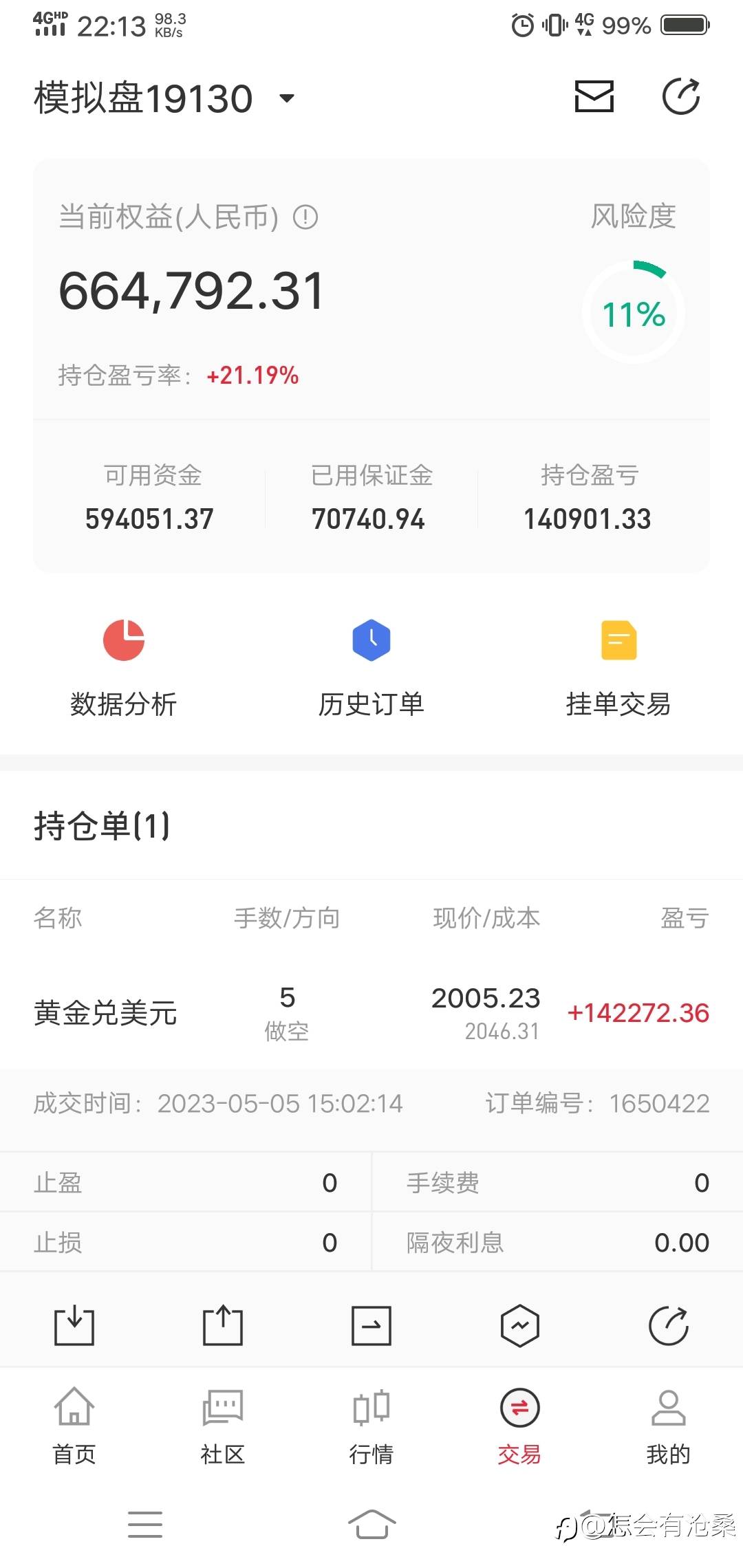 #XAU/USD#做模拟就是淡定,云淡风轻,波澜不惊。 风险提示:本文所述仅代表作者个人观点,不代表 Followme 的官方立场。Followme 不对内容的准确性、完整性或可靠性作出任何保证,对于基于该内容所采取的任何行为,不承担任何责任,除非另有书面明确说明。