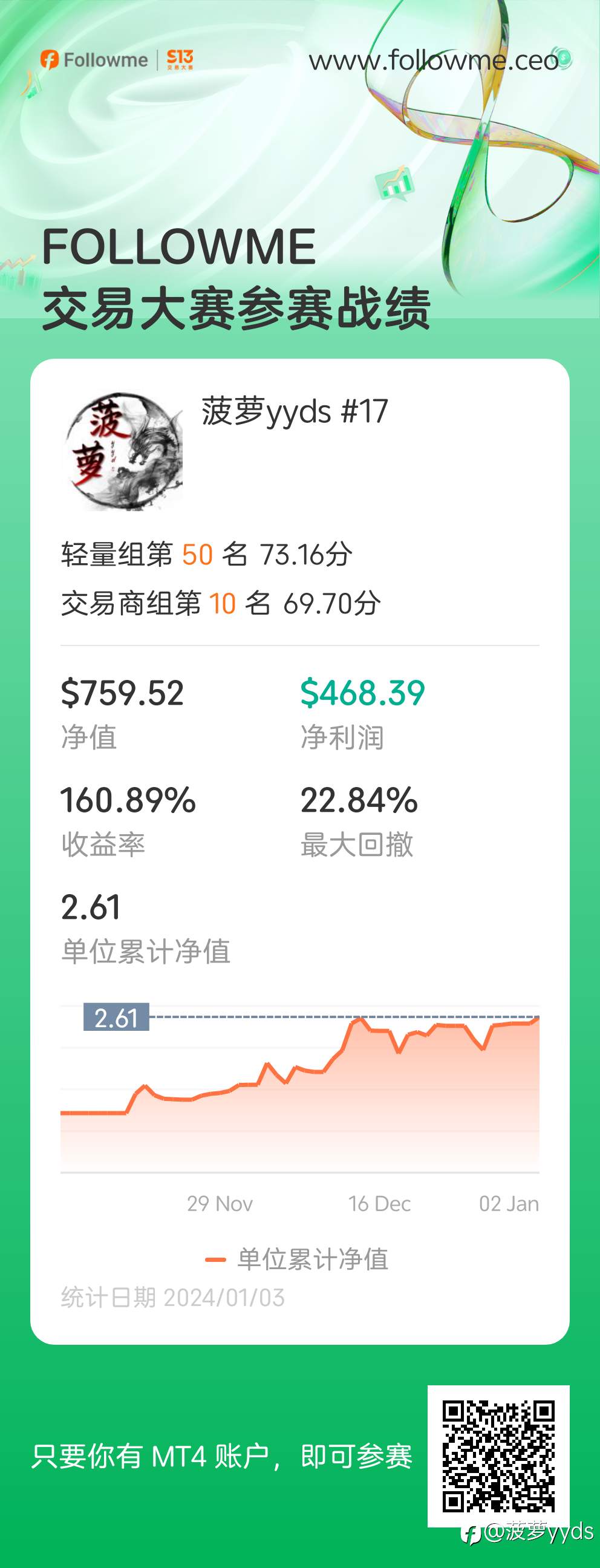 目前第四。请教一下,谁能告诉我单位累计净值,怎么算的吗? 风险提示:本文所述仅代表作者个人观点,不代表 Followme 的官方立场。Followme 不对内容的准确性、完整性或可靠性作出任何保证,对于基于该内容所采取的任何行为,不承担任何责任,除非另有书面明确说明。
