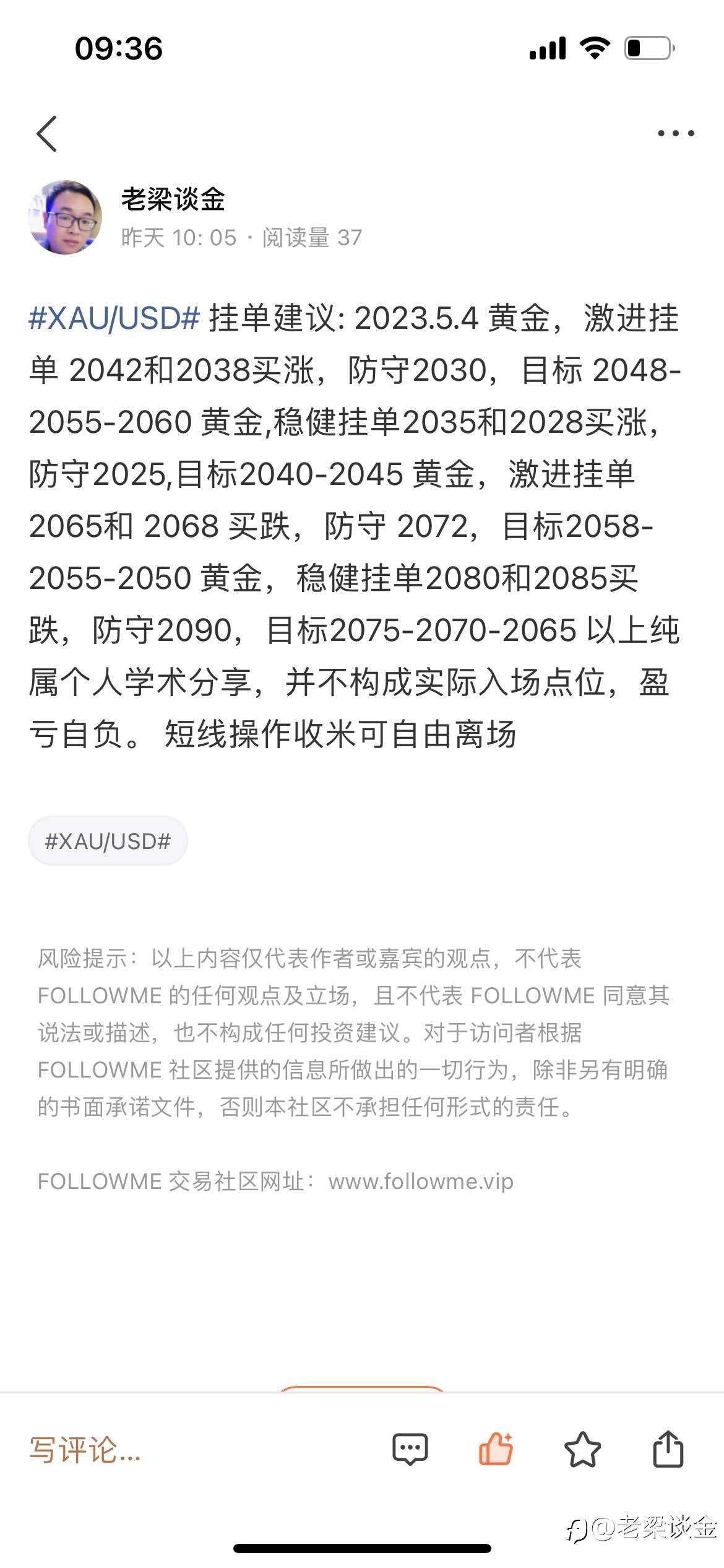 #XAU/USD# 1995多单进场,2000精准点位。获利5个点止盈离场。今天震荡行情,预防晚上有大行情。