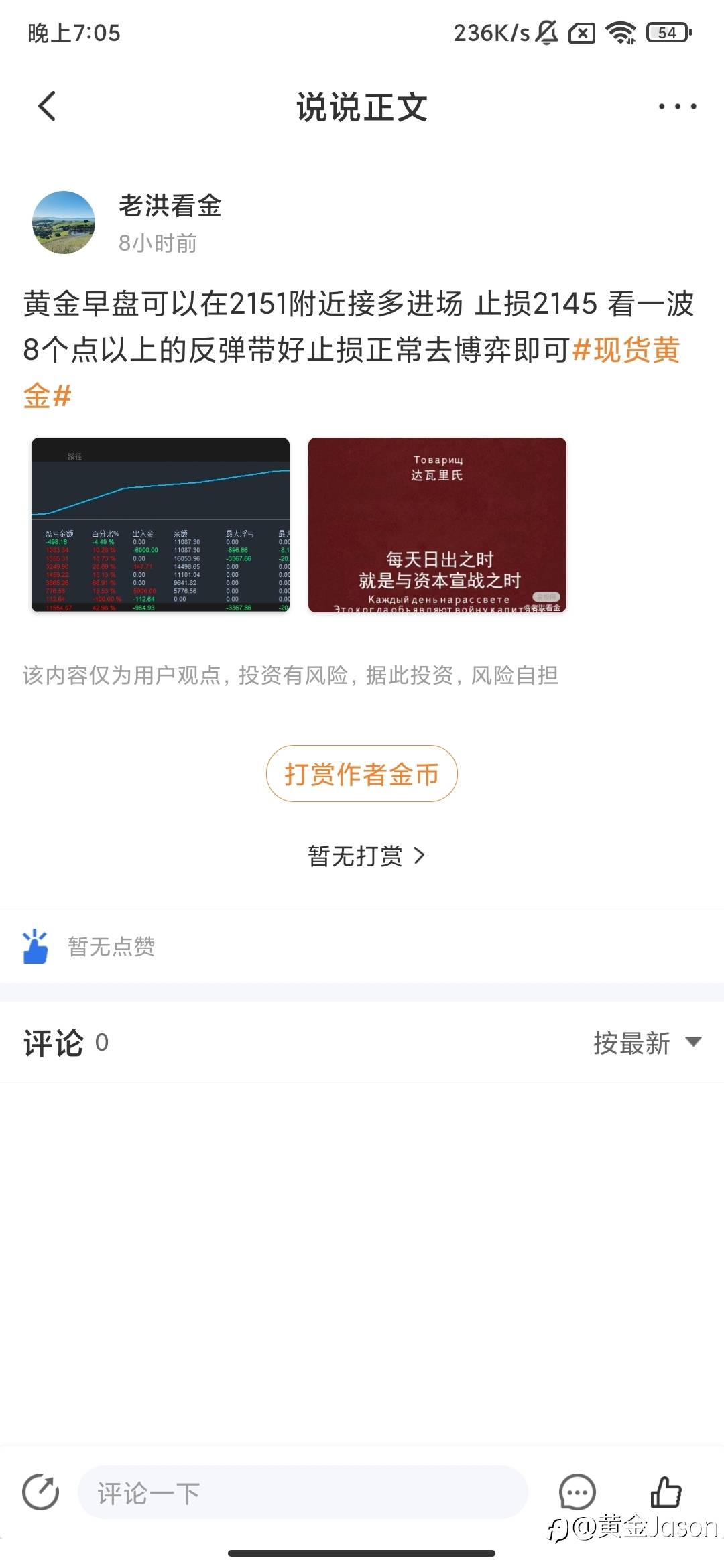 2030 2033剩余的仓位全部全面45 50止盈离场 等待55附近轻仓试空的机会#现货黄金# 风险提示:本文所述仅代表作者个人观点,不代表 Followme 的官方立场。Followme 不对内容的准确性、完整性或可靠性作出任何保证,对于基于该内容所采取的任何行为,不承担任何责任,除非另有书面明确说明。
