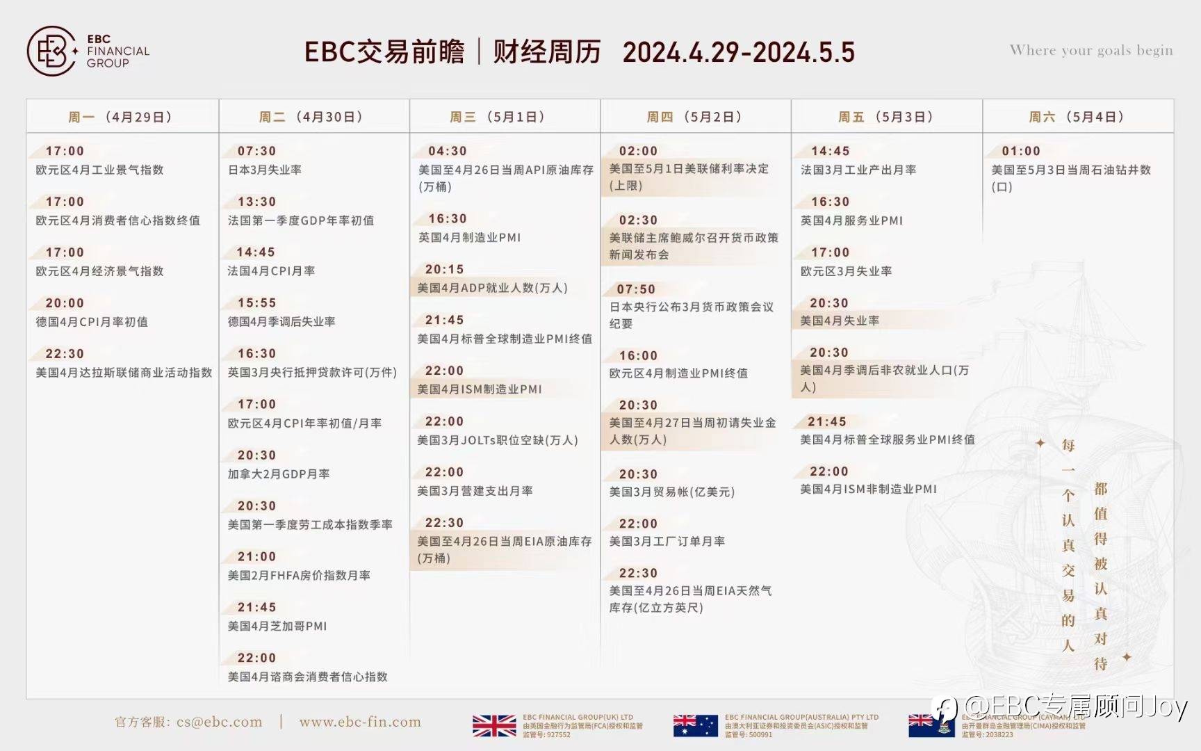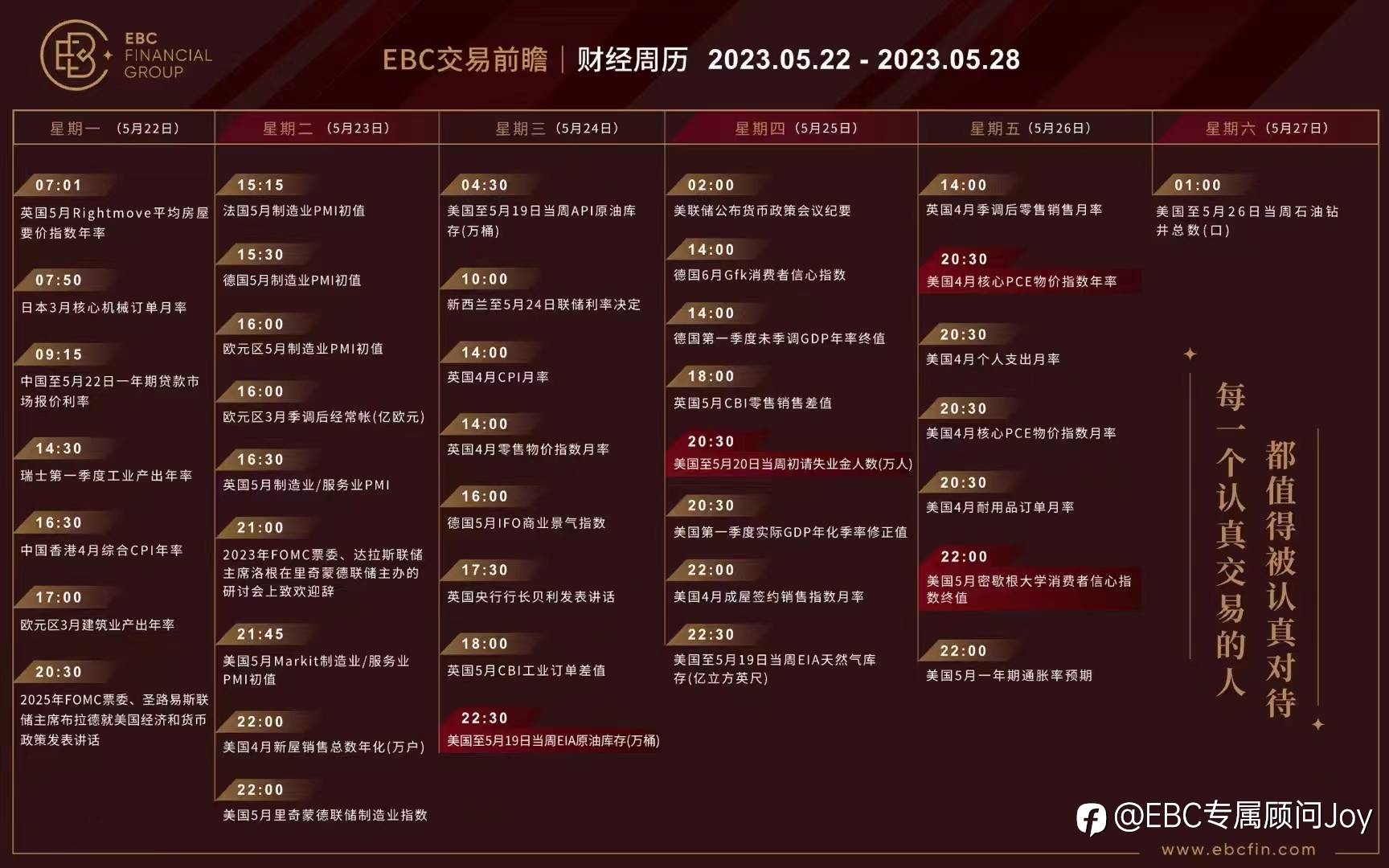 2023.05.08--2023.05.14 EBC交易前瞻/财经周历: 与您分享经济数据&重点事件 祝您交易顺达.🍺🌹👍🙋♀️ 风险提示:本文所述仅代表作者个人观点,不代表 Followme 的官方立场。Followme 不对内容的准确性、完整性或可靠性作出任何保证,对于基于该内容所采取的任何行为,不承担任何责任,除非另有书面明确说明。