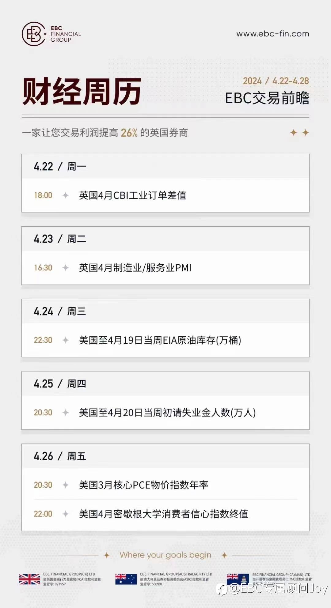 2023.05.22--2023.05.28 EBC交易前瞻/财经周历: 与您分享经济数据&重点事件 祝您交易顺达. 风险提示:本文所述仅代表作者个人观点,不代表 Followme 的官方立场。Followme 不对内容的准确性、完整性或可靠性作出任何保证,对于基于该内容所采取的任何行为,不承担任何责任,除非另有书面明确说明。