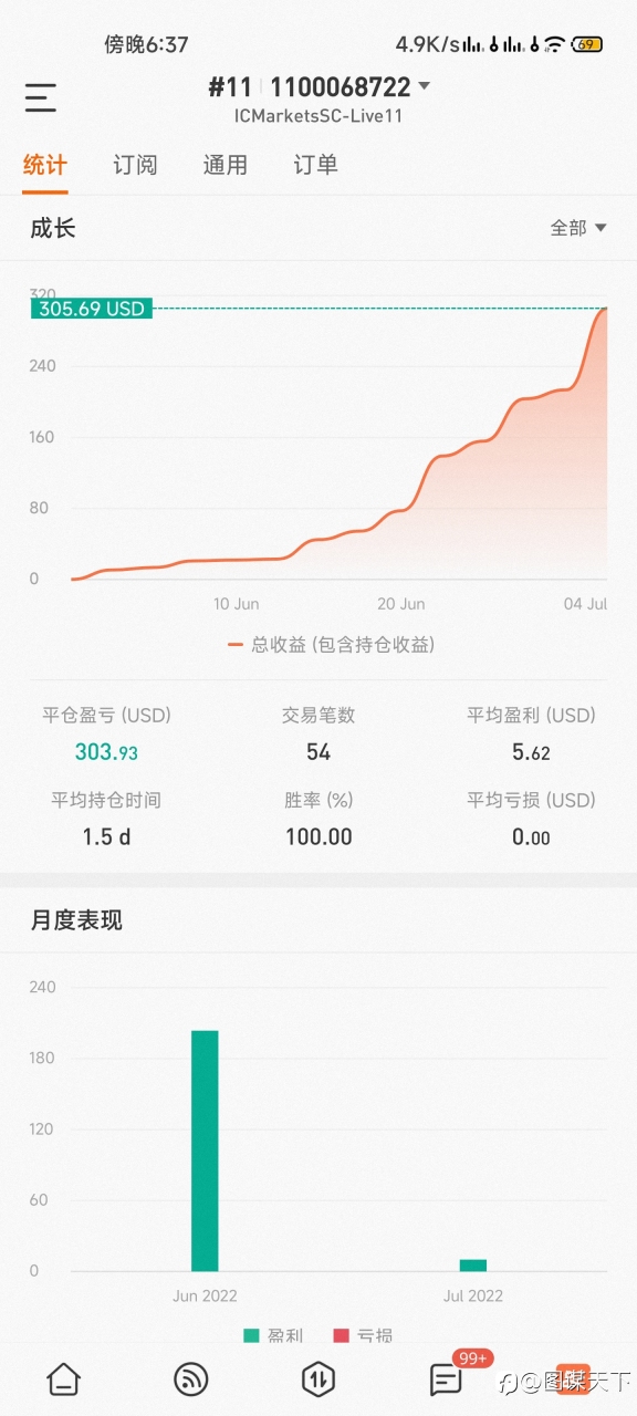 3、您账户的杠杆率应在1:200或更高的水平。否则,信号服务复制信号的比例会变小,你的盈利能力会低于我的信号。
