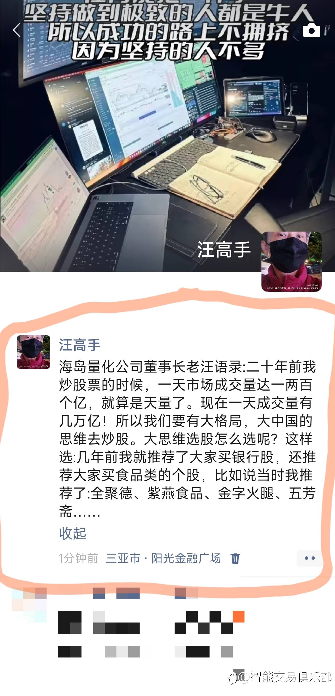 到目前为止,本社区手工交易能力最强的应该是不败交易花(以前名叫:最后一舞),唯一的风险就是浮亏时可能会连开重仓,然后深套或者是爆仓!还有N99也还可以(但还没过瓶颈期)! 00:00:13 风险提示:本文所述仅代表作者个人观点,不代表 Followme 的官方立场。Followme 不对内容的准确性、完整性或可靠性作出任何保证,对于基于该内容所采取的任何行为,不承担任何责任,除非另有书面明确说明。 赞赏作者 喜欢的话,赞赏支持一下