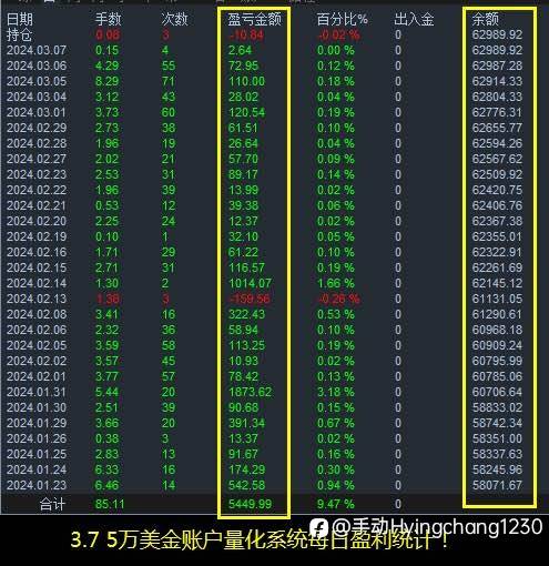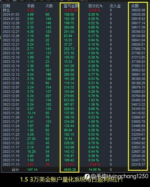 06.22日 当周量化跟单交易 数 据 一号策略:A0.5黄金对冲EA-145, 盈利:40.01 A1黄金对冲EA-561 盈利:29.31 二号策略:A2智汇黄金震荡EA-026 盈利:132.24 三号策略:A4 黄金震荡高阶EA-027 盈利:234.20 风险提示:本文所述仅代表作者个人观点,不代表 Followme 的官方立场。Followme 不对内容的准确性、完整性或可靠性作出任何保证,对于基于该内容所采取的任何行为,不承担任何责任,除非另有书面明确说明。