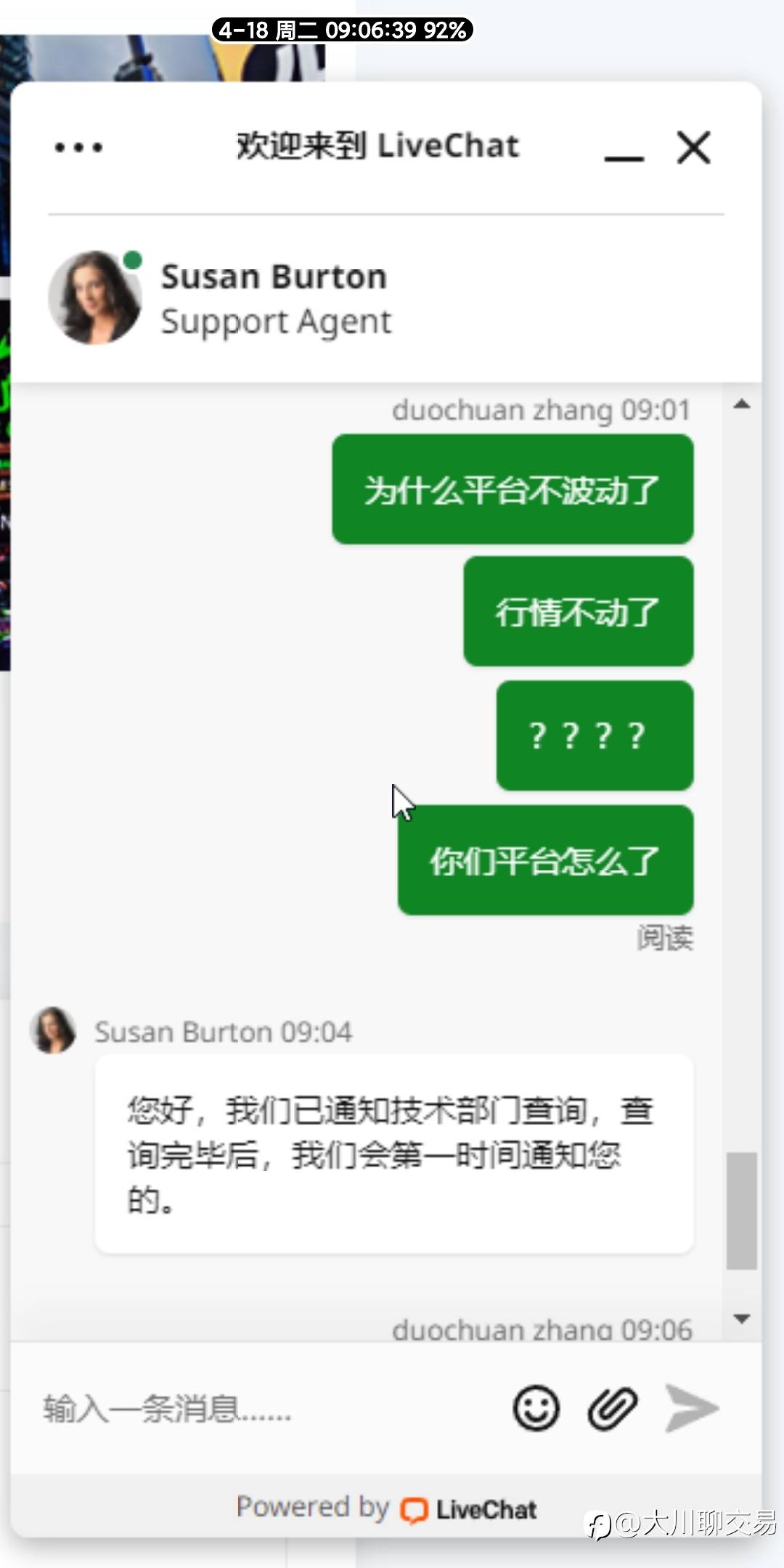 有没有fxtrading的工作人员,我想请教个问题😁 风险提示:本文所述仅代表作者个人观点,不代表 Followme 的官方立场。Followme 不对内容的准确性、完整性或可靠性作出任何保证,对于基于该内容所采取的任何行为,不承担任何责任,除非另有书面明确说明。