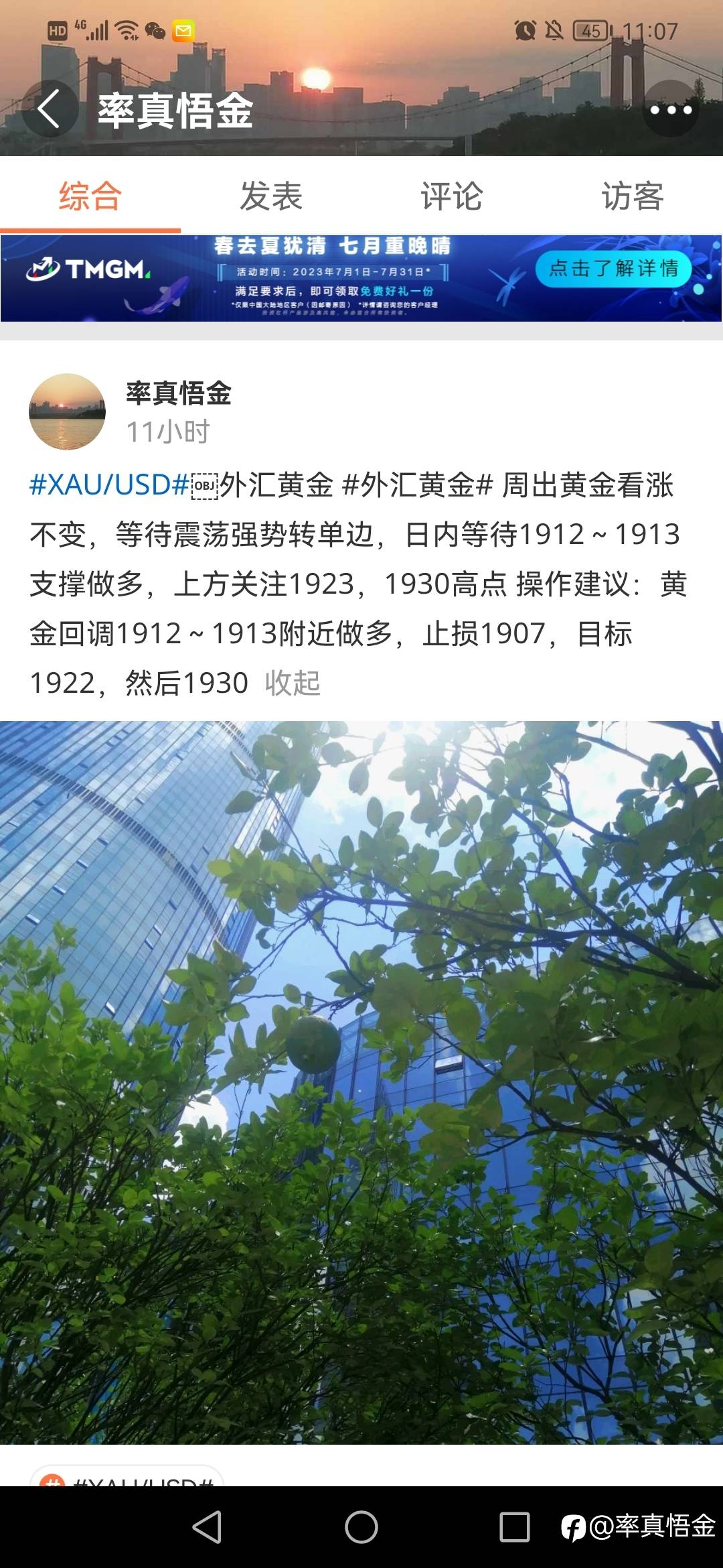亚欧盘不破1928,可在1928支撑上接多,继续看上涨破位,美盘可能会借助 CPI 数据冲高一波,上方关注1940,1955。 操作建议:黄金1930附近做多,止损1925,目标1945,然后1955 风险提示:本文所述仅代表作者个人观点,不代表 Followme 的官方立场。Followme 不对内容的准确性、完整性或可靠性作出任何保证,对于基于该内容所采取的任何行为,不承担任何责任,除非另有书面明确说明。