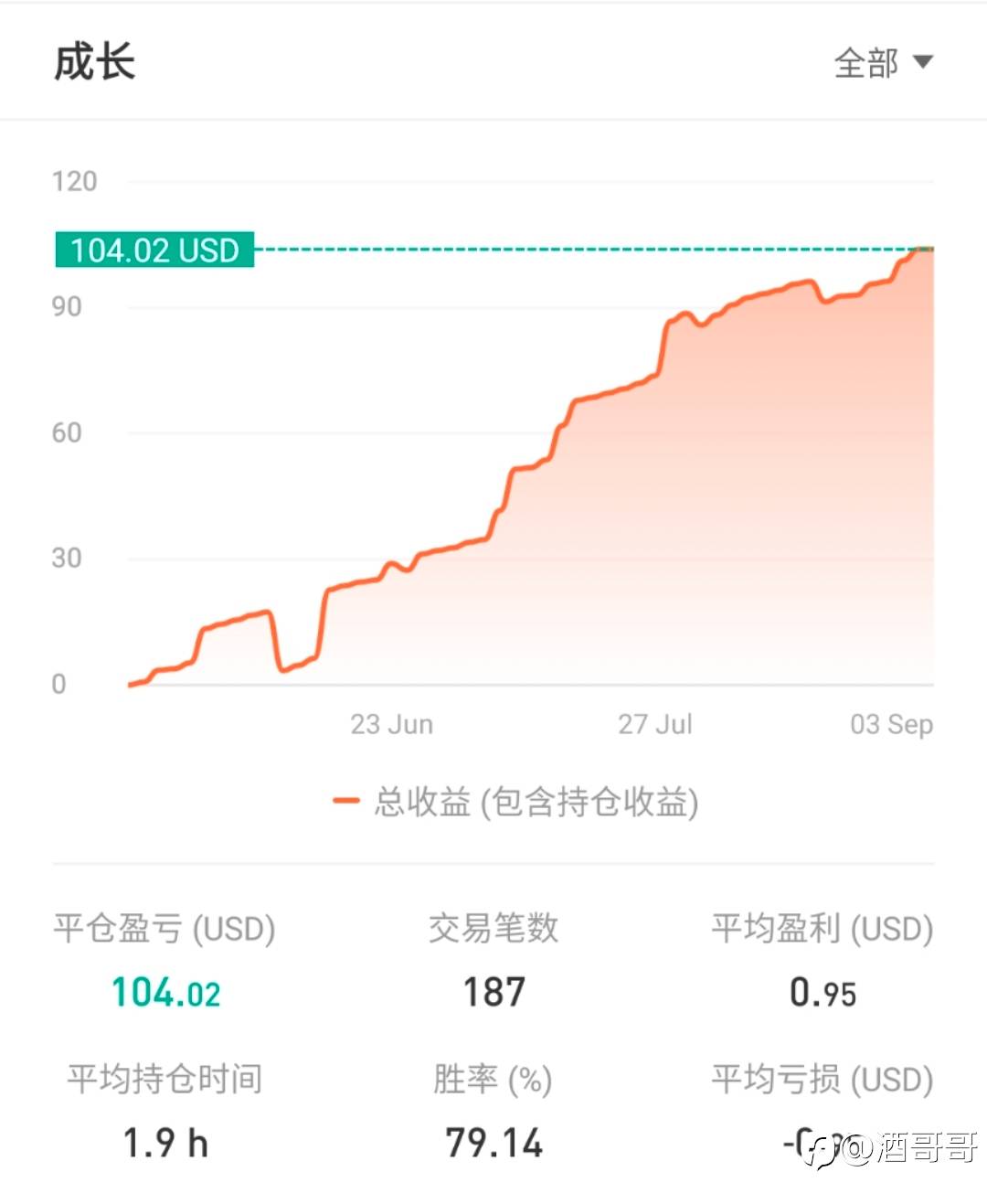 可以用概率学和统计学的角度,品读她的历史,验证我的现在。用她的逻辑,我们的运气,去展望我们的未来。 群里大神们一天翻倍一月10倍,不,我只需要每月1%,但你得给我足够时间时间。现在51%,即使有回撤,也是另一种满足。让我们展望未来吧。 已编辑 16 Jul 2023, 22:49 风险提示:本文所述仅代表作者个人观点,不代表 Followme 的官方立场。Followme 不对内容的准确性、完整性或可靠性作出任何保证,对于基于该内容所采取的任何行为,不承担任何责任,除非另有书面明确说明。