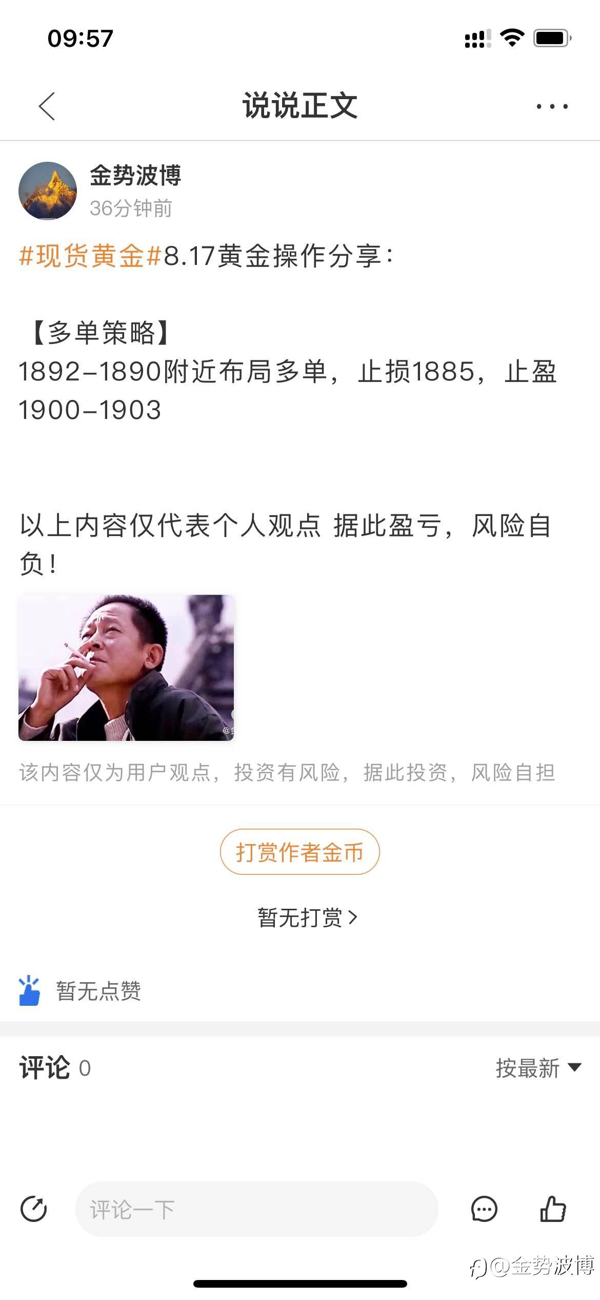 #XAU/USD# 挺好的 风险提示:本文所述仅代表作者个人观点,不代表 Followme 的官方立场。Followme 不对内容的准确性、完整性或可靠性作出任何保证,对于基于该内容所采取的任何行为,不承担任何责任,除非另有书面明确说明。