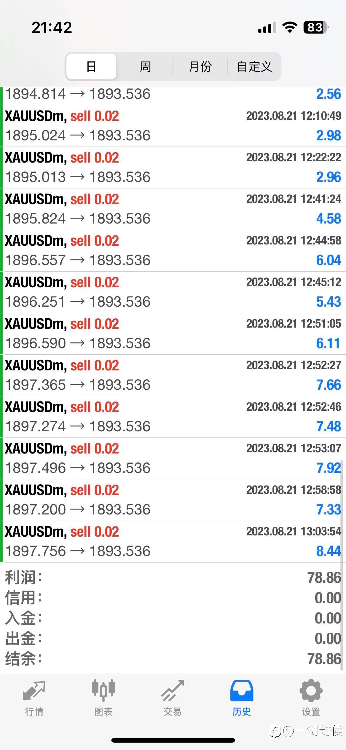 8号账号专做黄金,EA➕人工结合模式,每天清仓不过夜,8月21收益2.2%收工清仓。本月目前盈利超过20%。 风险提示:本文所述仅代表作者个人观点,不代表 Followme 的官方立场。Followme 不对内容的准确性、完整性或可靠性作出任何保证,对于基于该内容所采取的任何行为,不承担任何责任,除非另有书面明确说明。