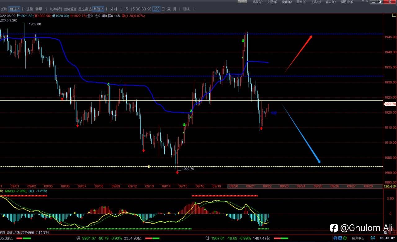 Shorting near 1924, stop loss 1932, take profit 1914, 1908, 1902