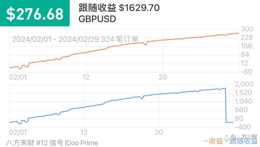 Exness归档这一点真不好,followme不能完整显示盈利情况。8号账户今年7月5日连接,目前盈利2384,2月时间基本翻倍了。主要交易澳加和澳元,然后就是黄金。开单不是很频繁,主要追求稳,欢迎订阅。 风险提示:本文所述仅代表作者个人观点,不代表 Followme 的官方立场。Followme 不对内容的准确性、完整性或可靠性作出任何保证,对于基于该内容所采取的任何行为,不承担任何责任,除非另有书面明确说明。