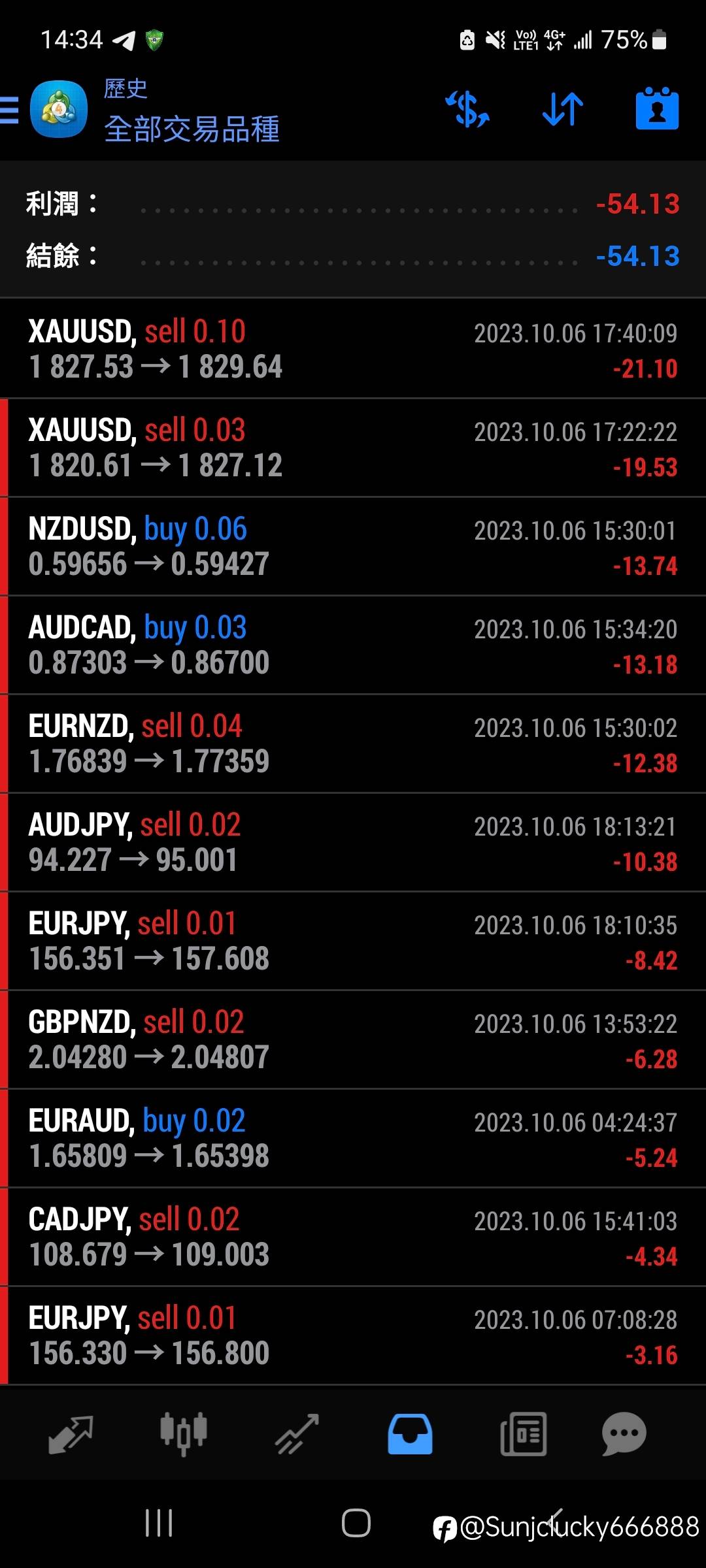 10/6虧損-54usd 大概-3% 风险提示:本文所述仅代表作者个人观点,不代表 Followme 的官方立场。Followme 不对内容的准确性、完整性或可靠性作出任何保证,对于基于该内容所采取的任何行为,不承担任何责任,除非另有书面明确说明。