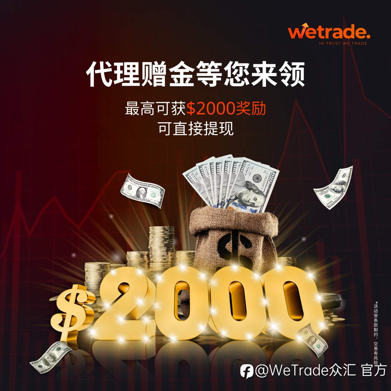 活动期间,当月代理累计新增客户、活跃度及代理指数客户美元交易量同时满足对应等级即可获得最高2000美元赠金奖励!