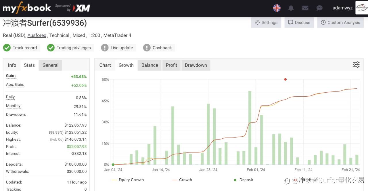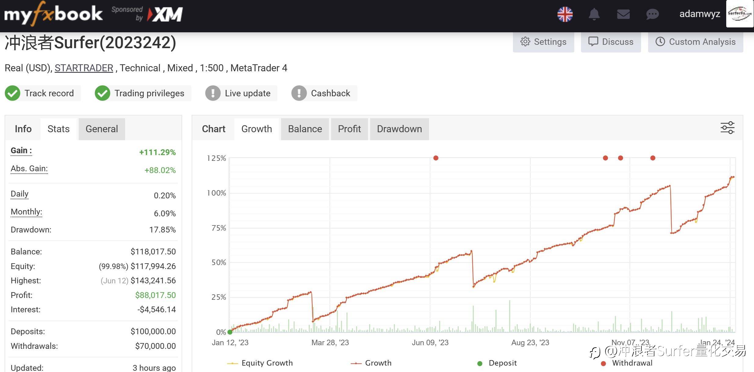10万美元的起步资金要求,已经被很多交易平台的美分账户所化解,金融科技的力量可让1000美金转化为10万美分,那么与冲浪者的10万美金的账户就可以完全同步。 那么,冲浪者已经完全为不同资金的交易者打开了大门,0.1-5万美金的账户运用美分账户是十分理想的选择,5-100万美元的账户则可以选择更低交易成本的ecn账户,实现账面盈利的大丰收。 事实上,5万美金以下的账户更能有做前进版冲浪者的冲动,追求以小博大的效应。而大资金可以选择更加沉稳的冲浪者参数,获得稳健收益。 冲浪者追求的是乌龟赛过野兔的战略,不求暴利,但求稳健就是盈利。严格避免外汇市场“竹篮打水一场空”的魔咒。