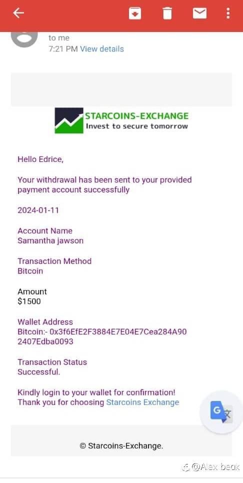 查看翻译 investment doesn't hard to withdraw with our company starcoin exchange investment 风险提示:本文所述仅代表作者个人观点,不代表 Followme 的官方立场。Followme 不对内容的准确性、完整性或可靠性作出任何保证,对于基于该内容所采取的任何行为,不承担任何责任,除非另有书面明确说明。