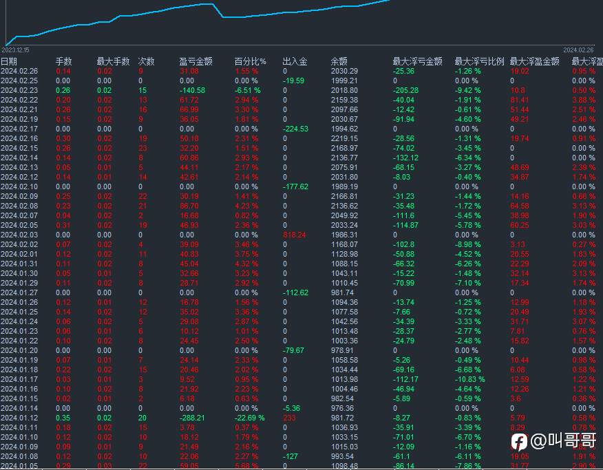 极尽克制——最大单笔开仓仅需0.02手,总持仓限于0.08手之内。在这里,我们将仓位管理奉为圣旨,将盈利视为必然的恩赐。歡迎您与我们并肩作战,无论您是初入江湖的新手,独来独往的个人投资者,还是寻求伙伴的机构与市场团队,这里都是您共赢的舞台。让我们一同拳拳到肉,探索金融创新的未知境界!”