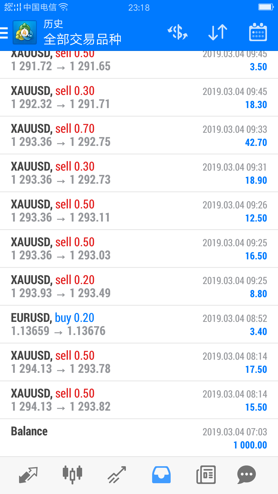 昨天,我下定决心在100个交易日里严格执行制定好的做单系统和做单守则以达到克服毛病,带领团队稳定收益的目标。为此用一个账户转入一千美元,开通博客,统计每天收益。