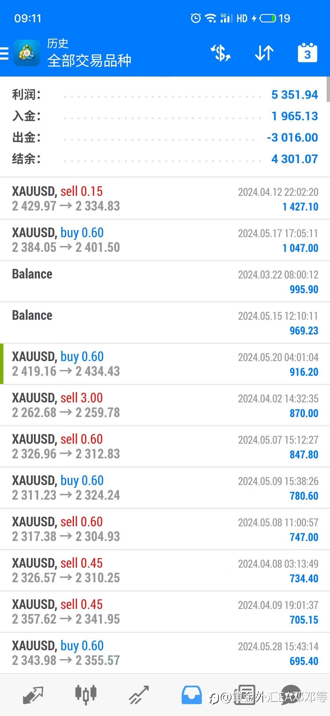 运行半年到现在每周盈利全红 风险提示:本文所述仅代表作者个人观点,不代表 Followme 的官方立场。Followme 不对内容的准确性、完整性或可靠性作出任何保证,对于基于该内容所采取的任何行为,不承担任何责任,除非另有书面明确说明。