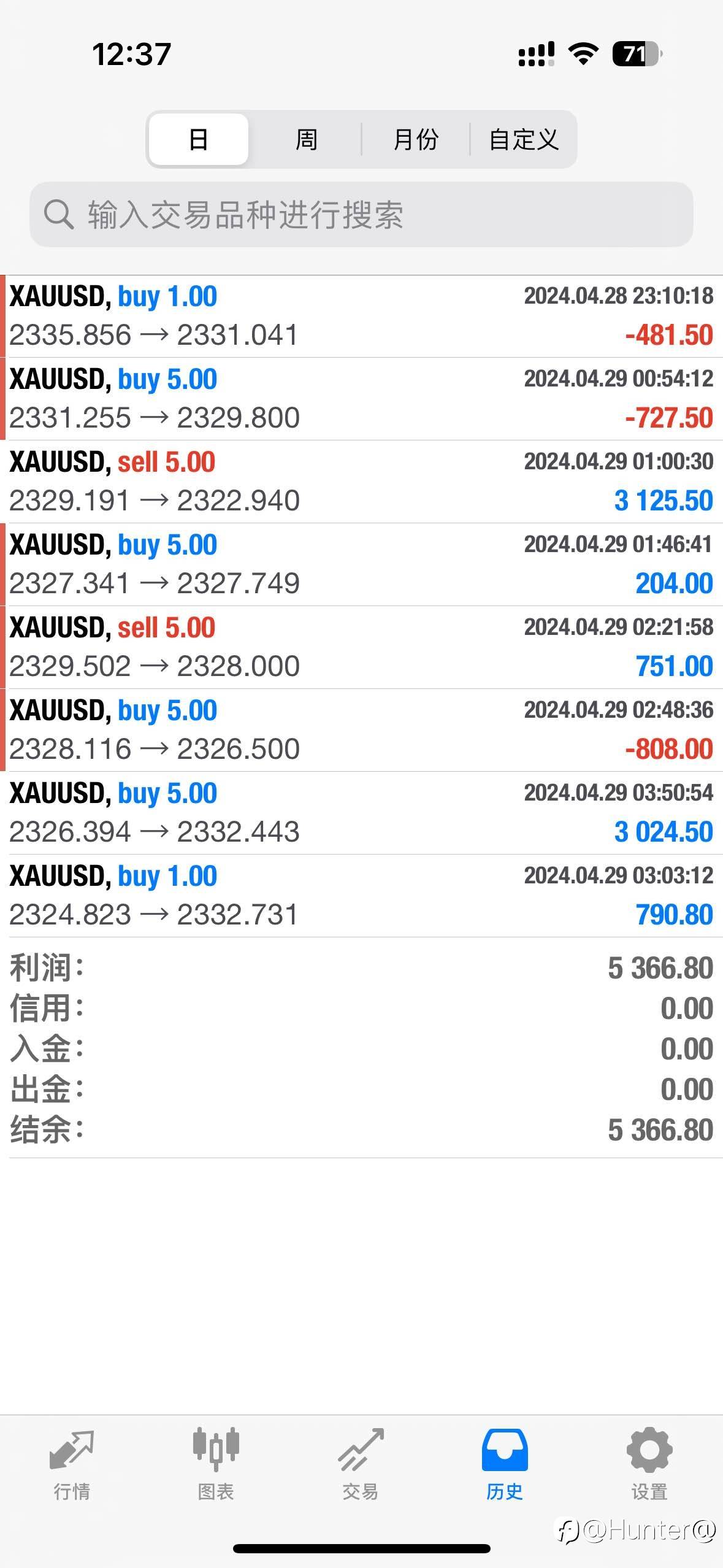BTC全自动EA跑一周的结果,接下来10号账户跑EA,看得上的欢迎来跟,跑了一周盈利750刀左右,以下是交易记录 风险提示:本文所述仅代表作者个人观点,不代表 Followme 的官方立场。Followme 不对内容的准确性、完整性或可靠性作出任何保证,对于基于该内容所采取的任何行为,不承担任何责任,除非另有书面明确说明。