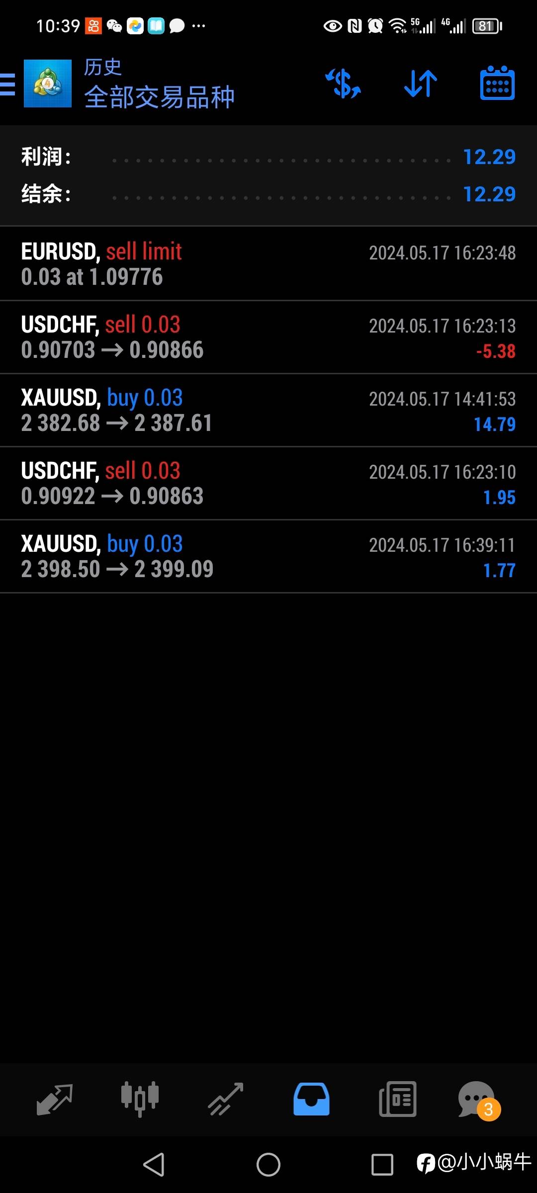 2024年3月31日38美金启航,独创价格行为手工交易策略,不马丁,不扛单,日内波段,因此账号不能做信号源,现移步至7号信号源,敬请关注共同见证复利奇迹! 00:00:59 风险提示:本文所述仅代表作者个人观点,不代表 Followme 的官方立场。Followme 不对内容的准确性、完整性或可靠性作出任何保证,对于基于该内容所采取的任何行为,不承担任何责任,除非另有书面明确说明。 赞赏作者 喜欢的话,赞赏支持一下