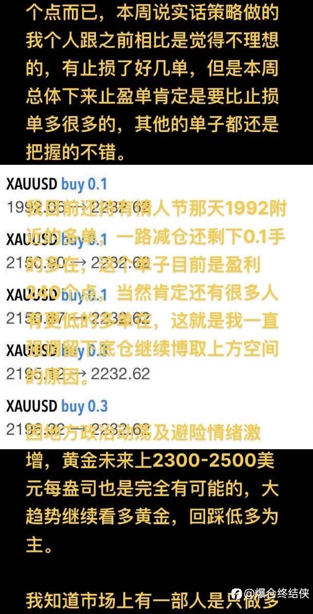 我目前还持有情人节那天1992附近的多单,一路减仓还剩下0.1手的多在,这个单子目前是盈利240个点,当然肯定还有很多人有更低的多单在,这就是我一直强调留下底仓继续博取上方空间的原因。