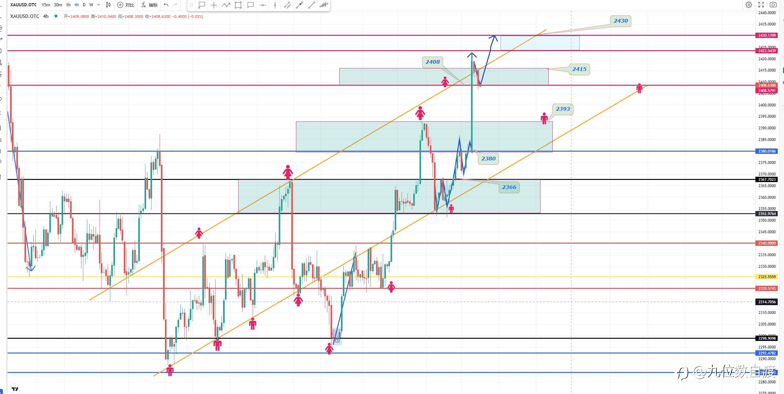 大家好,我是闲修,主做日内趋势。新的一月又开始了,也将迎来下半年的首战!老规矩,回顾下行情。本月美联储与欧洲央行加拿大货币政策出现分歧,欧减息25个基点,挫使黄金一天大跌100刀。而美联储通胀依旧过高。而上周的PCE物价指数发布创下了3年以来新低 也是黄金逼近2336 初请 数据表示 通胀有所缓解。日元也是跌破161 贬值35% 地缘政治方面,对于美元 俄乌 或者中东依旧紧张。美日韩也是在韩国联合军演秀肌肉,引发俄朝的各种不满。那么本周该如何操作?从 美联储发布各数据看,由于通胀原因,经济有所疲软下滑,重点关注美元指数动向。 黄金则大概率以 震荡为主。如图所示。震荡区间为2324-2372 周五收线日线收出了(大阳包阴 )可能进一步延续多头,第一目标 2338 第二目标2355 第三目标2372 反之 日线整体结构走出头肩顶结构 此次如未能站稳2336 则可以看作为下跌后的回测。下坡2322则可看空 第一目标2313 第二目标2398 第三目标2387 极限目标 2384 以上内容仅代表个人观点。市场是机动性的,人性是贪婪的,给出明确信号再考虑入场。交易是对人性的洗髓,涅槃的重生,做好风险管理,开启财富之门。关注我,交易路上不踩坑!如请点赞关注收藏转发。感谢支持#你在交易中自律吗# #黄金外汇解盘# #大宗商品牛气冲天# #交易心态比技术更重要吗#