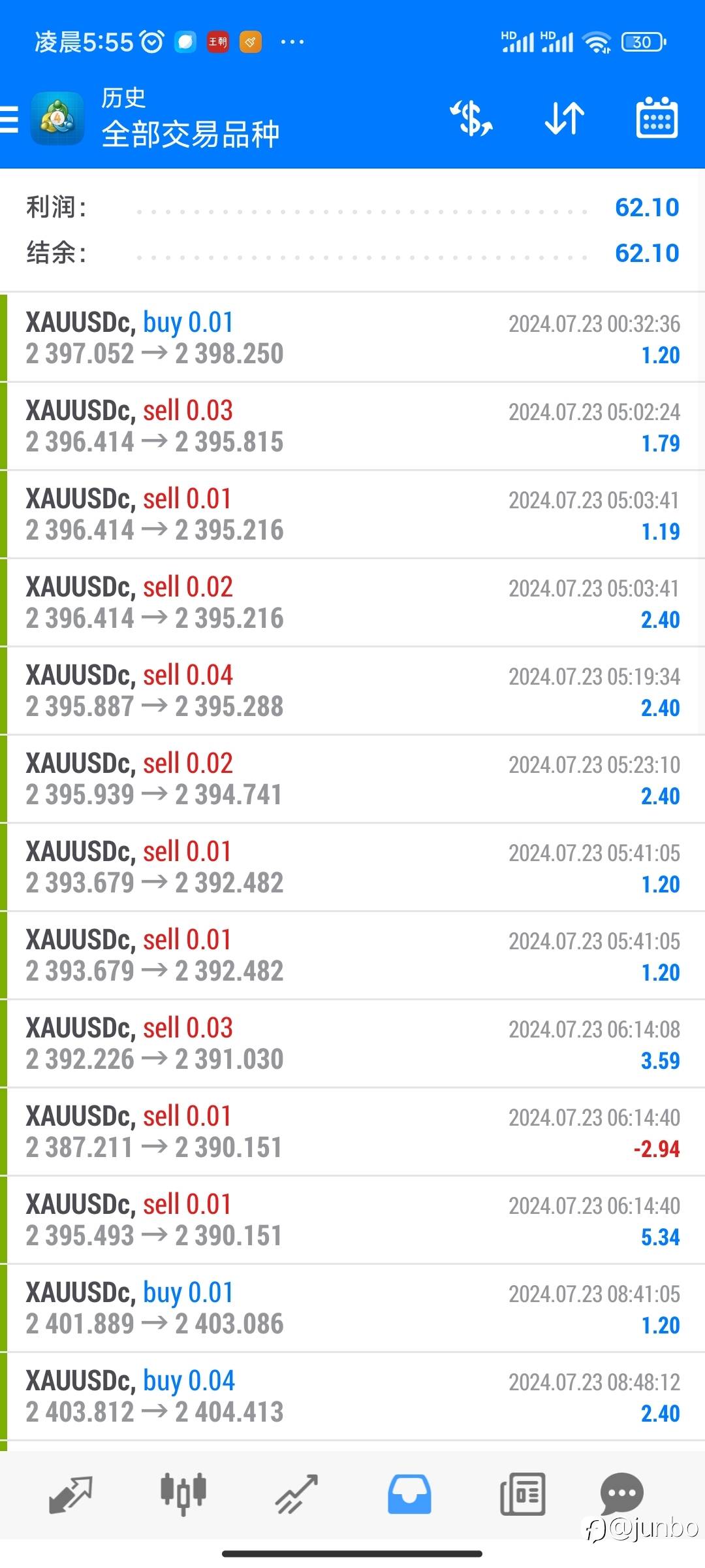 #Exness##XAU/USD##手动止盈还是设置止盈##交易晒图##爆仓#7月9日单日163浮亏10 风险提示:本文所述仅代表作者个人观点,不代表 Followme 的官方立场。Followme 不对内容的准确性、完整性或可靠性作出任何保证,对于基于该内容所采取的任何行为,不承担任何责任,除非另有书面明确说明。