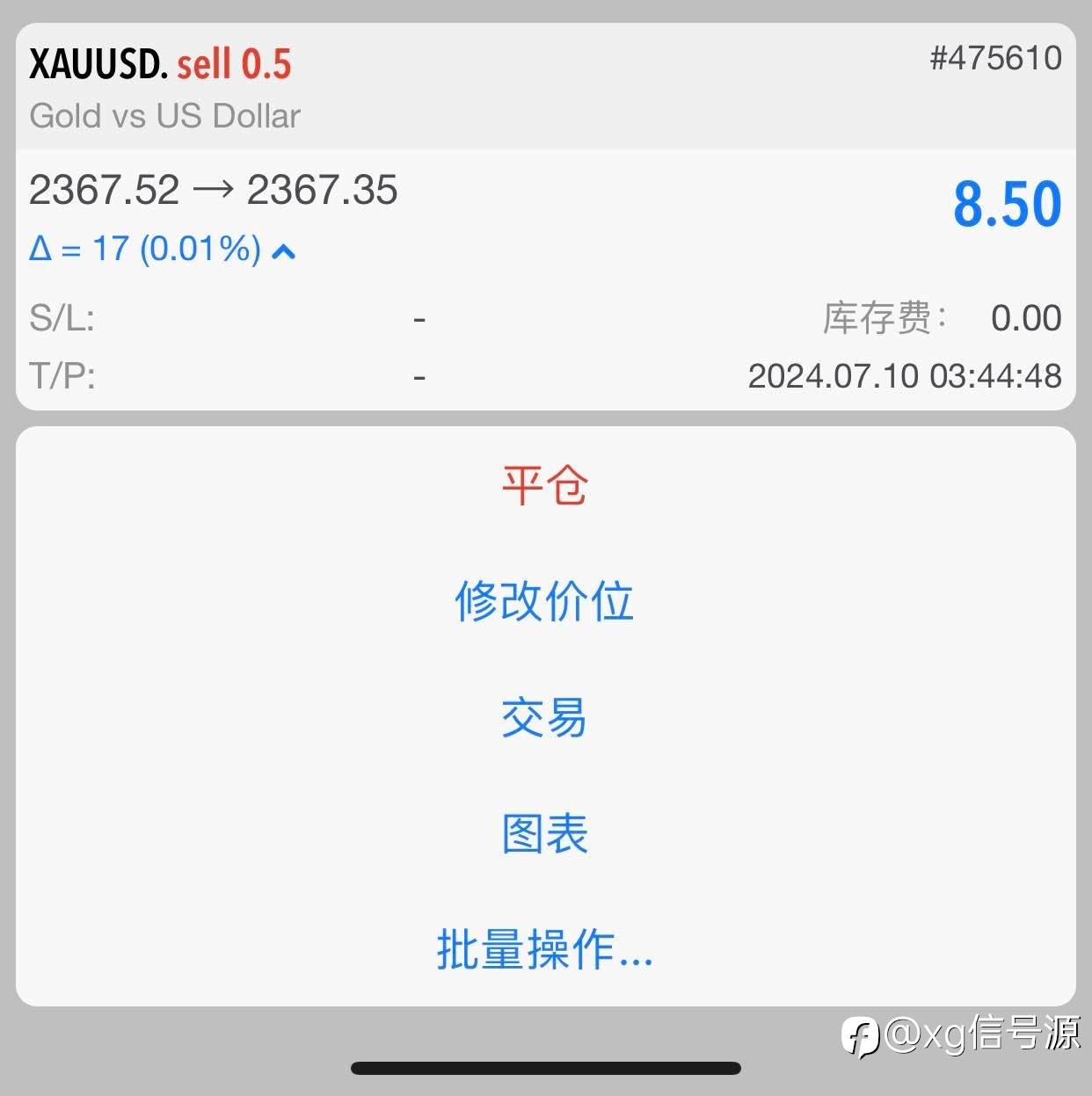 #XAU/USD# 现价做多,止损7个点,止盈看到2418 风险提示:本文所述仅代表作者个人观点,不代表 Followme 的官方立场。Followme 不对内容的准确性、完整性或可靠性作出任何保证,对于基于该内容所采取的任何行为,不承担任何责任,除非另有书面明确说明。